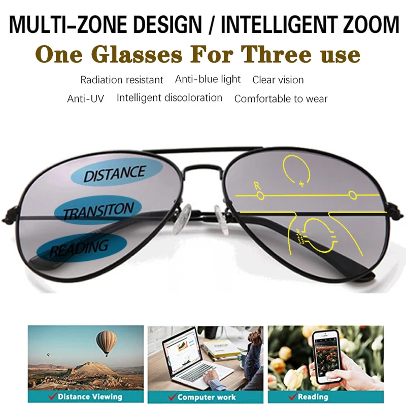 Вождения Smart фотохромные очки для чтения унисекс прогрессивные ан...