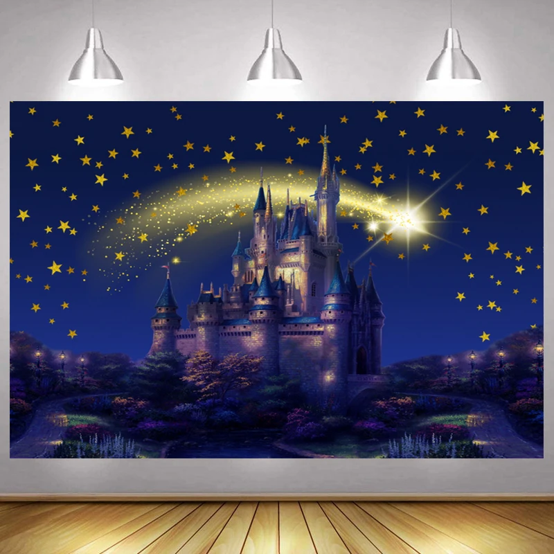 Фон для фотосъемки с изображением замка сказочной принцессы синего звездного неба фон для фотосъемки новорожденных детей на день рождения золотые звезды Фотостудия
