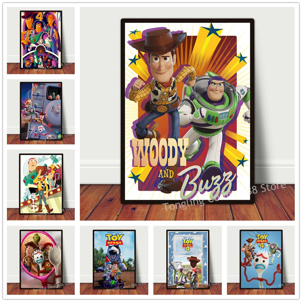Постер из мультфильма История игрушек Disney, Аниме Холст, Настенная картина в скандинавском стиле, украшение для гостиной, спальни, кабинета, детской комнаты