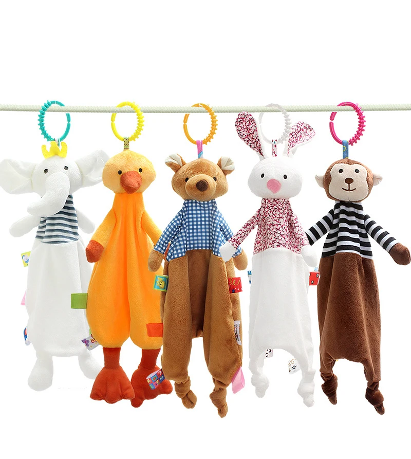 Детские игрушки для новорожденных, успокаивающее полотенце, Мягкая погремушка с милым мультяшным животным, для мобильного телефона, кролик, обезьяна, Детская кукла, прорезыватель, игрушка для рождественских подарков