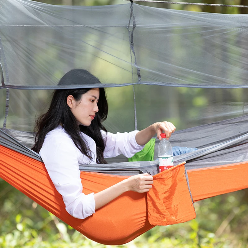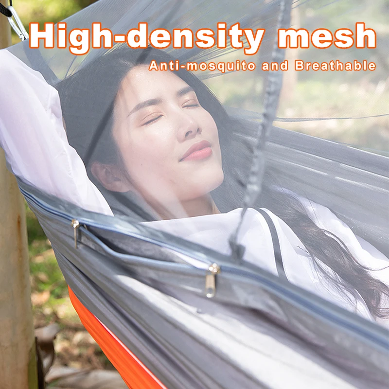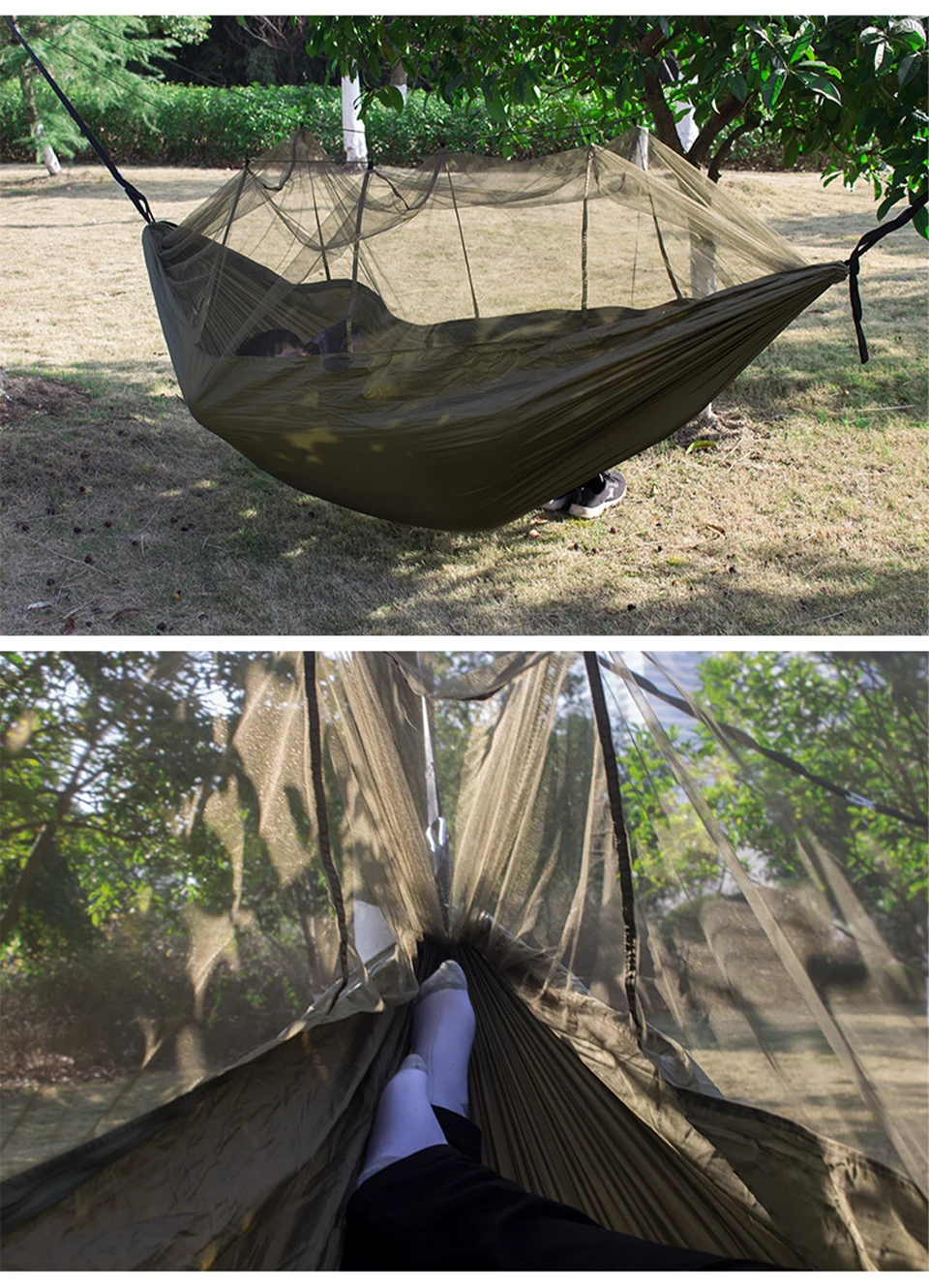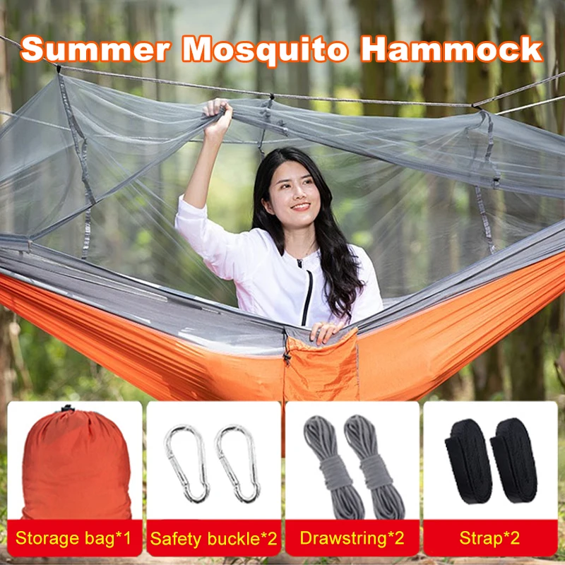 Портативный гамак для кемпинга на 1-2 человек с москитной сеткой, дополнительные пять подарков для хорошего сна, садовые качели
