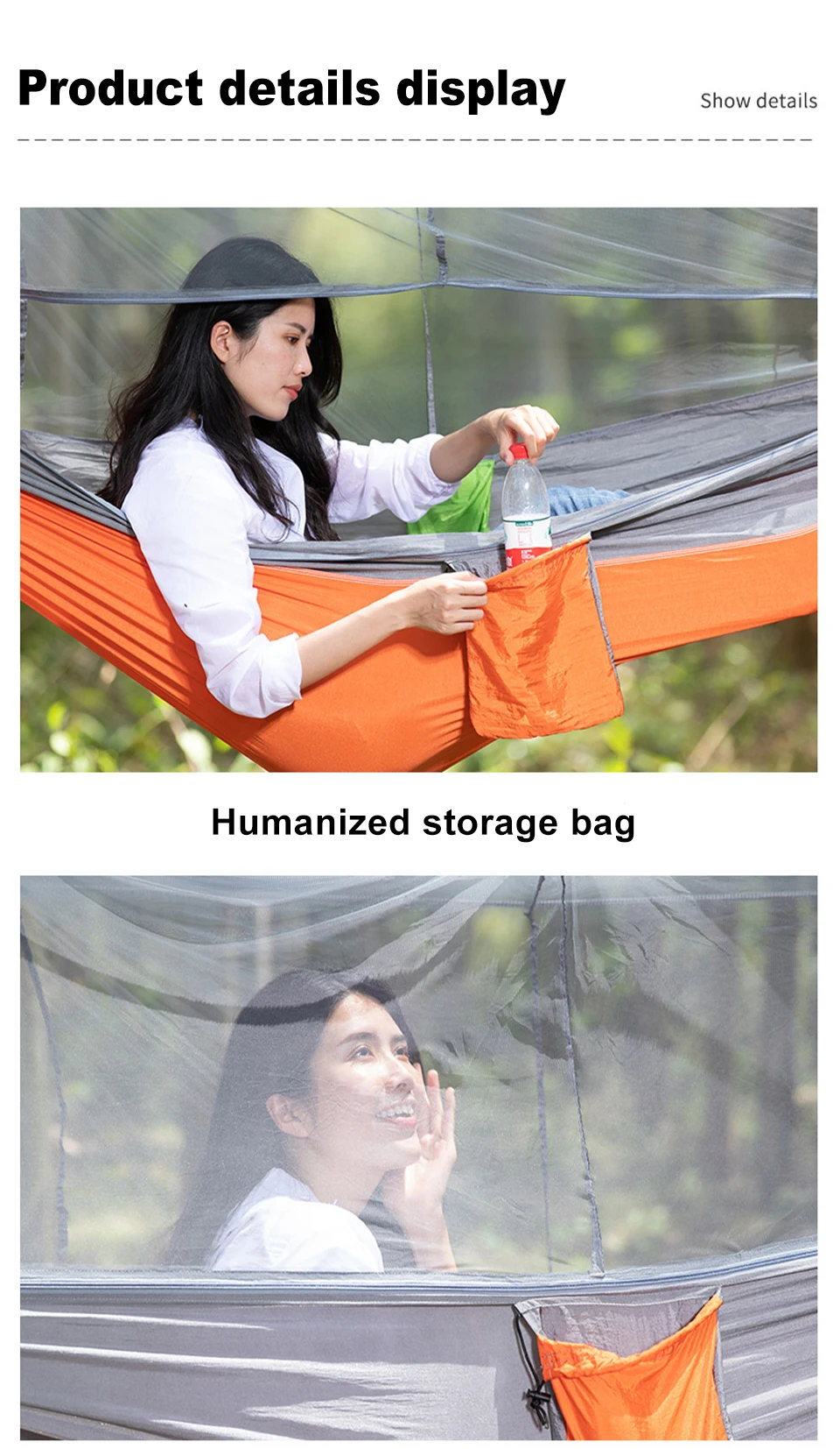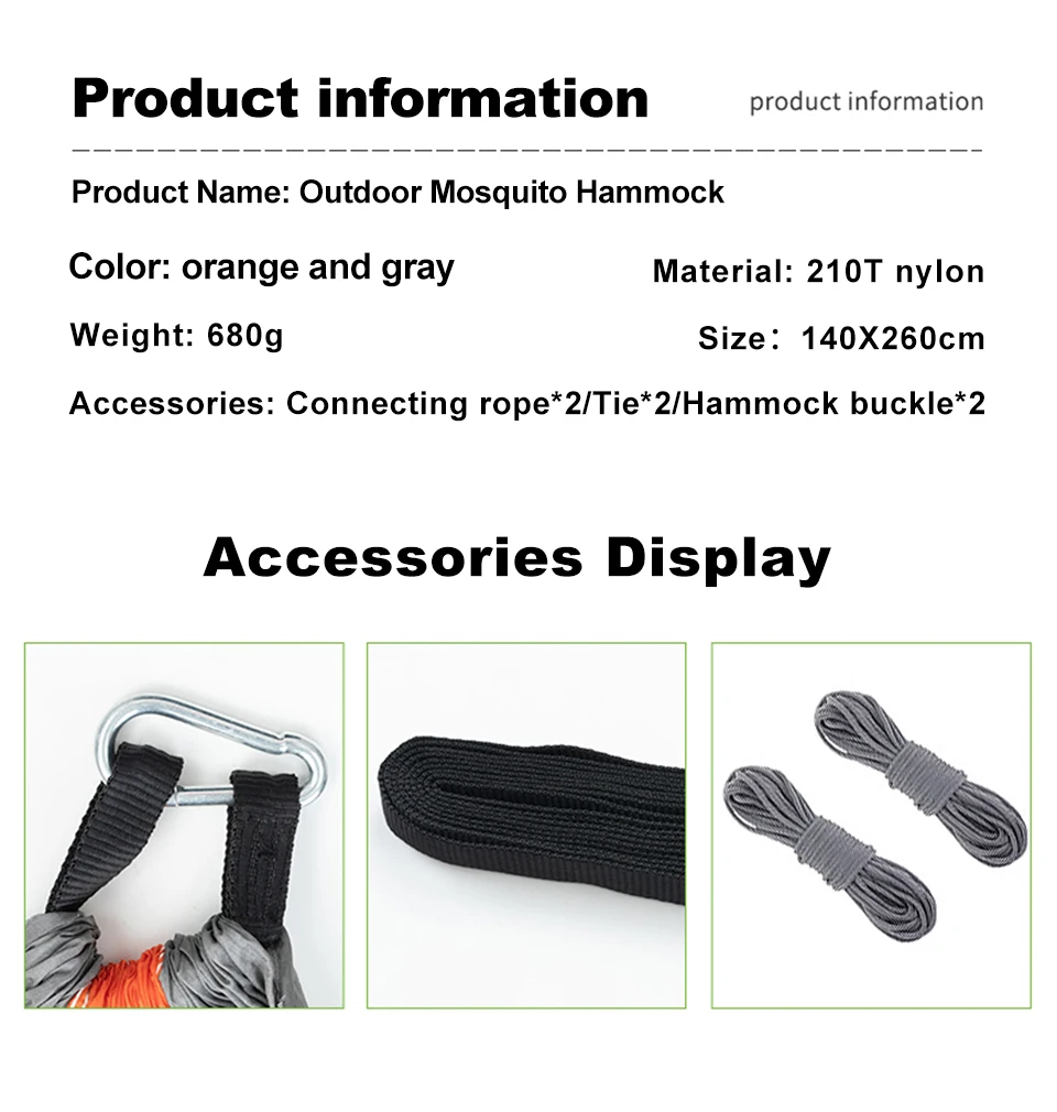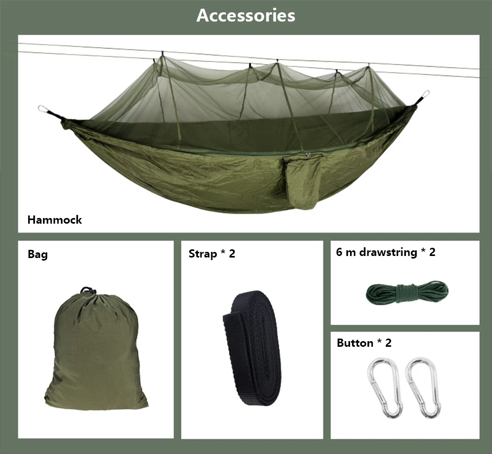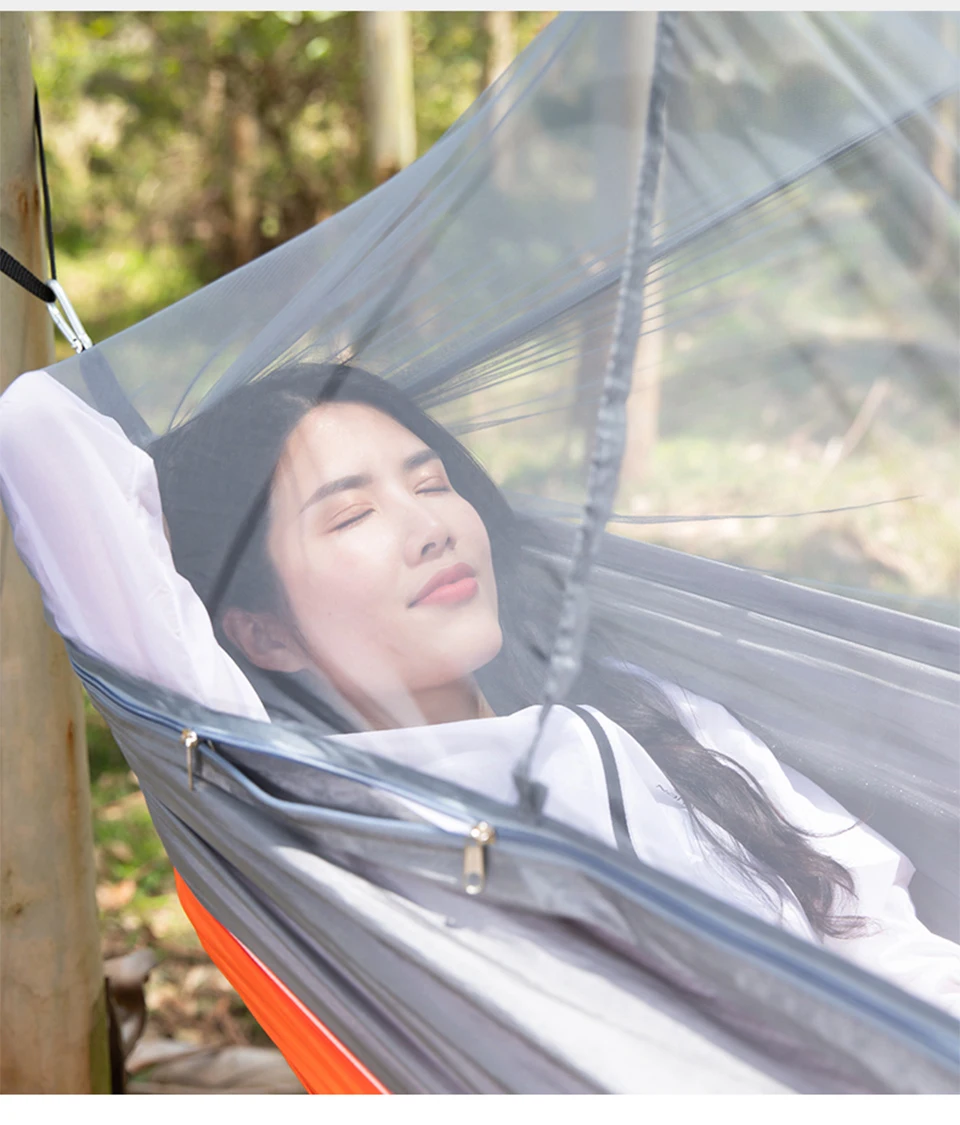 Портативный гамак для кемпинга на 1-2 человек с москитной сеткой, дополнительные пять подарков для хорошего сна, садовые качели