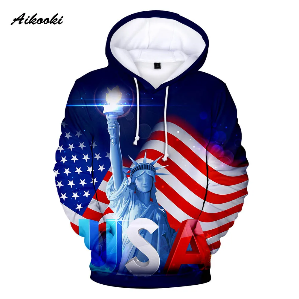 Толстовка Aikooki с капюшоном для мужчин и женщин, свитшот с 3d-изображением национального флага США по случаю Дня независимости 4 июля
