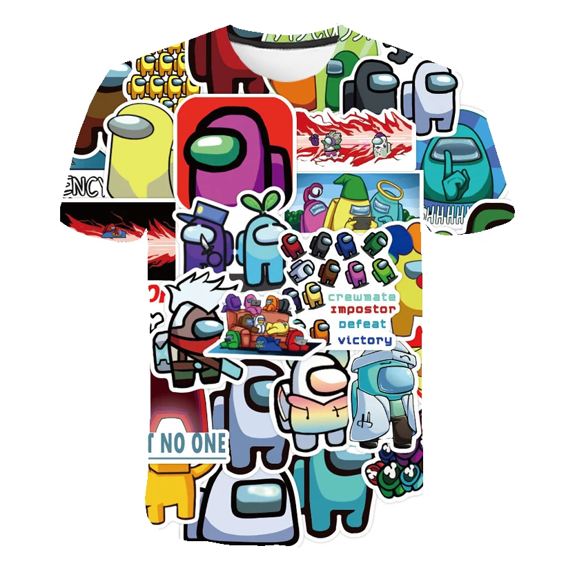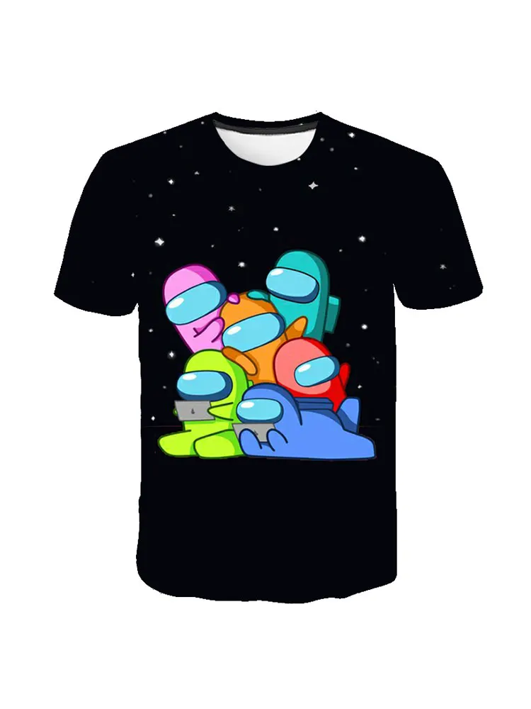 Детская футболка с коротким рукавом и 3D принтом из игры Amongus, летняя дышащая рубашка для мальчиков
