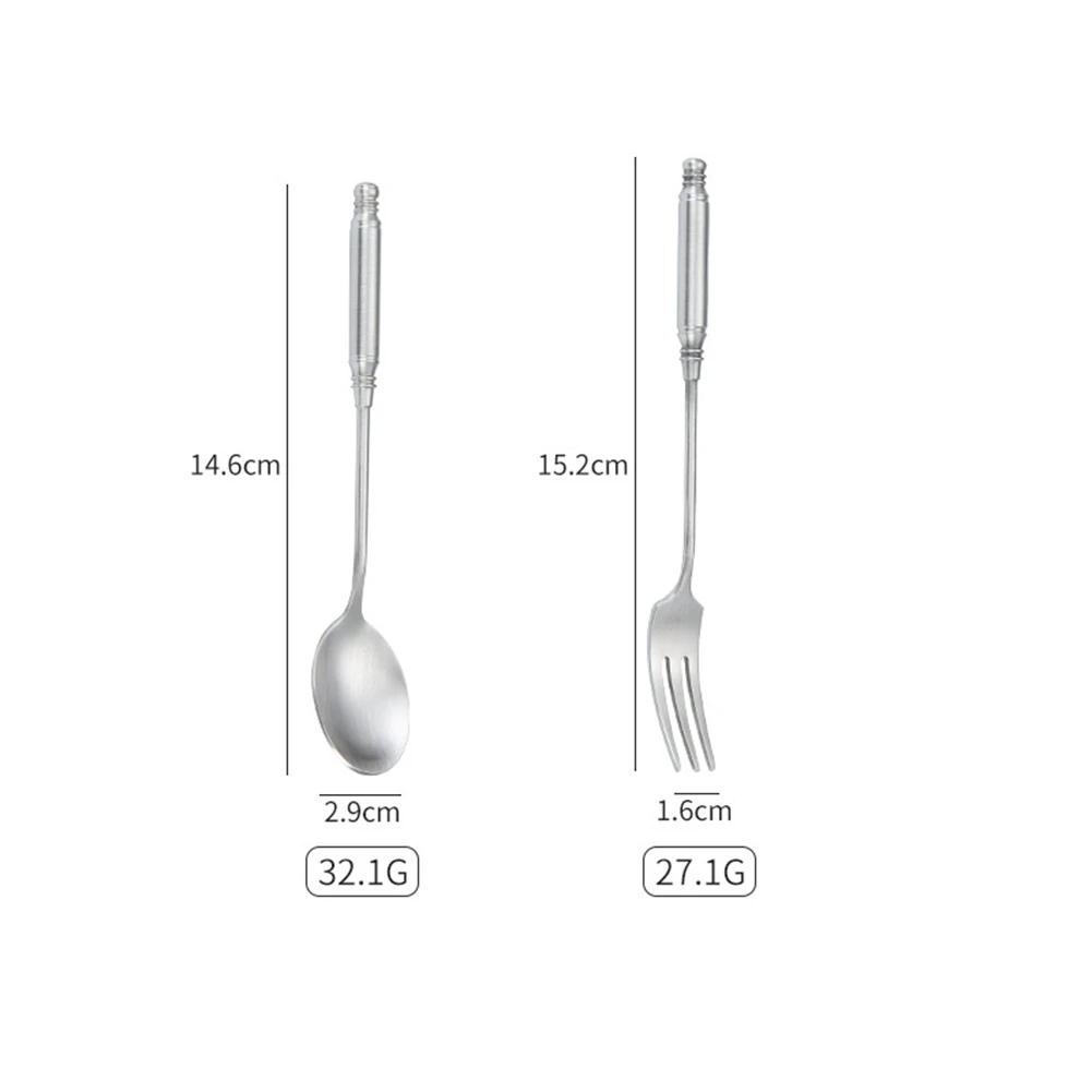 1. Материал: нержавеющая сталь 3042. Размеры: ложка/14,6*2,9 см, вилка/15,2*1,6 см3. Вес: ложка/0,0321 кг, вилка/0,0271 кг4. Посылка: OPP сумкаОсобенности:1. Пищевая нержавеющая сталь марки 304, с хорошей коррозионной стойкостью и термостойкостью.2. Поверхность принимает процесс шлифовки и волочения проволоки, который увеличивает защиту поверхности посуды и не легко царапается.3. Цельное формование, бесшовная сварка, прочный и прочный, не легко деформируется.4. Изысканное и гладкое мастерство, без заусенцев, рук, без ран.5. Светильник с роскошной ручкой, разработан в соответствии с пропорцией человеческого сцепление с телом, нежное ощущение руки и удобство в использовании.