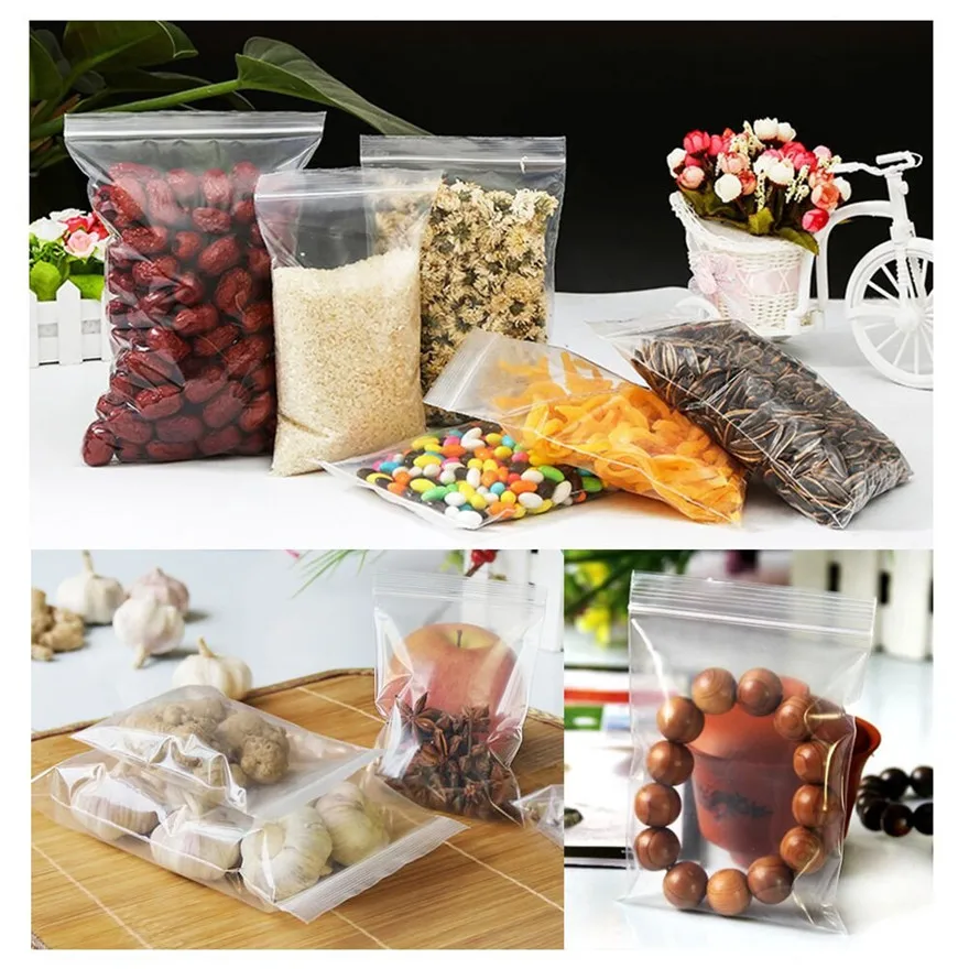 100 шт. замка застежка-молнии пластиковые пакеты прозрачный Еда сум...