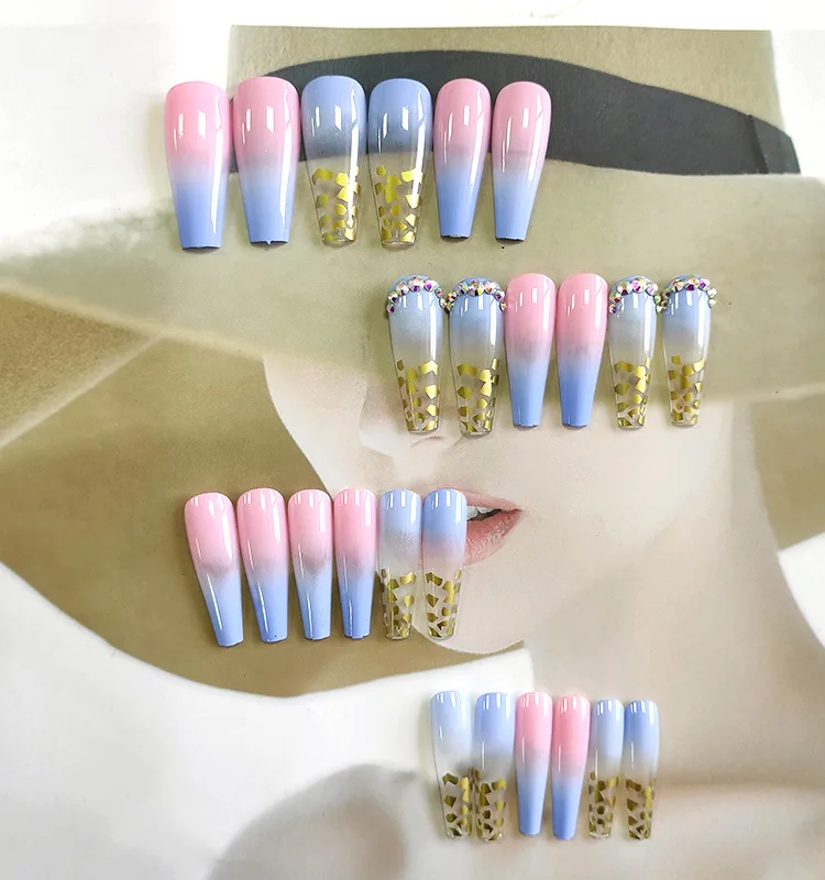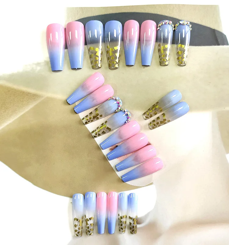 24 шт. комплект роскошных радужных дизайнов Желейный клей гель алмазные Длинные накладные ногти полный набор искусственных ногтей
