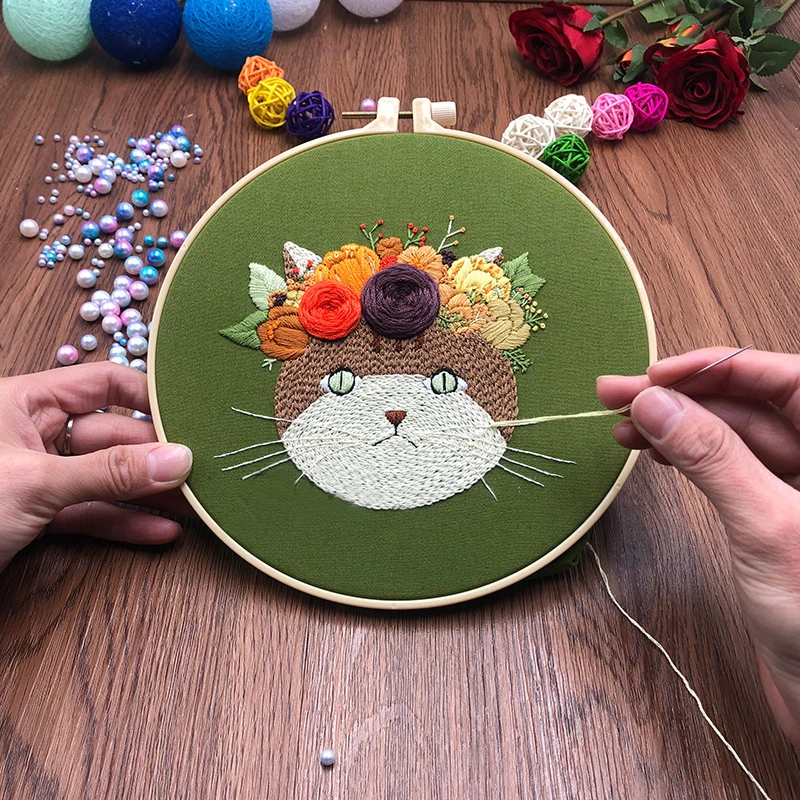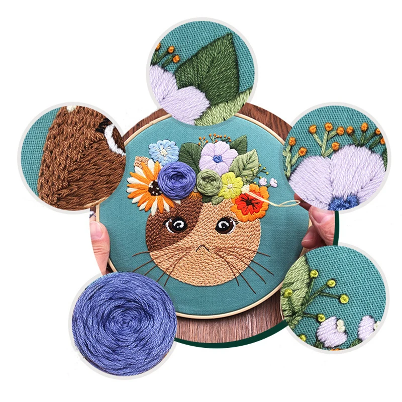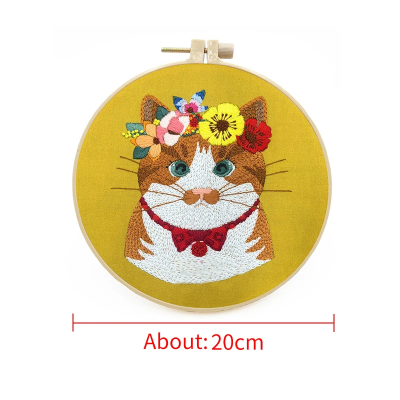 Набор для вышивания с изображением мультяшного кота посылка Набор для вышивки крестиком для начинающих, набор для рукоделия сделай сам, Набор для вышивки обручем
