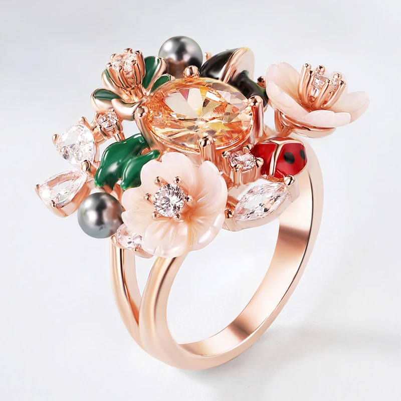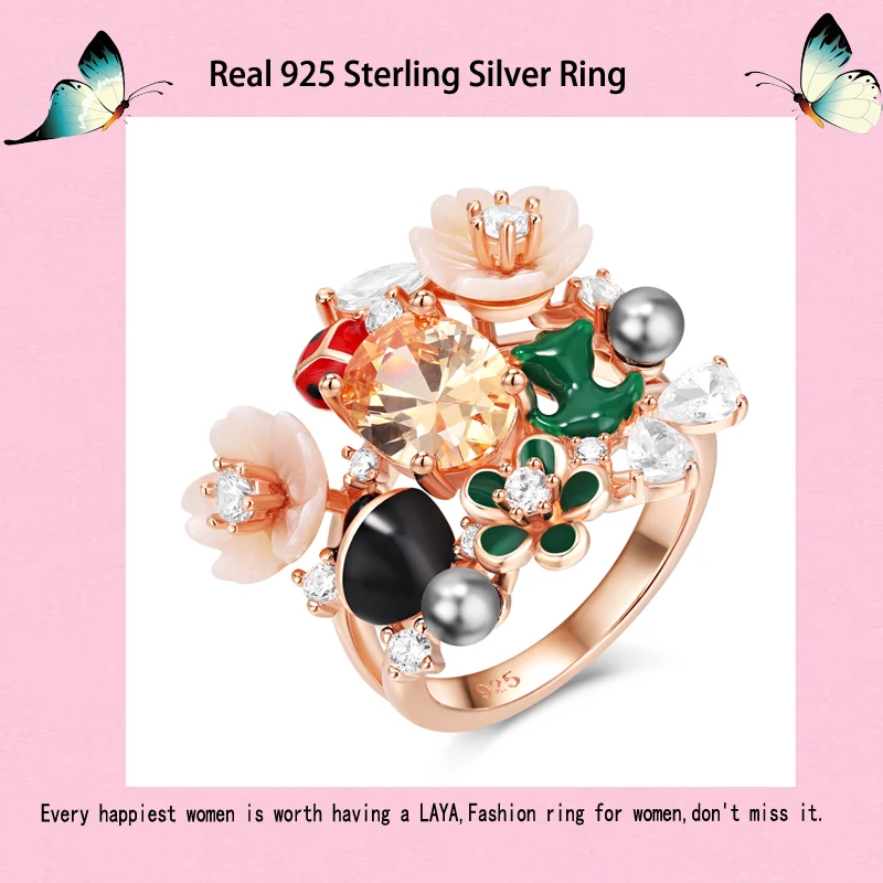 Лайя Кольцо Для Женщин Высокое Качество Циркон Натуральная Раковина Цветок Стерлингового Серебра 925 Пробы Животное Эмаль Мода Оригинальные Современные Ювелирные Изделия