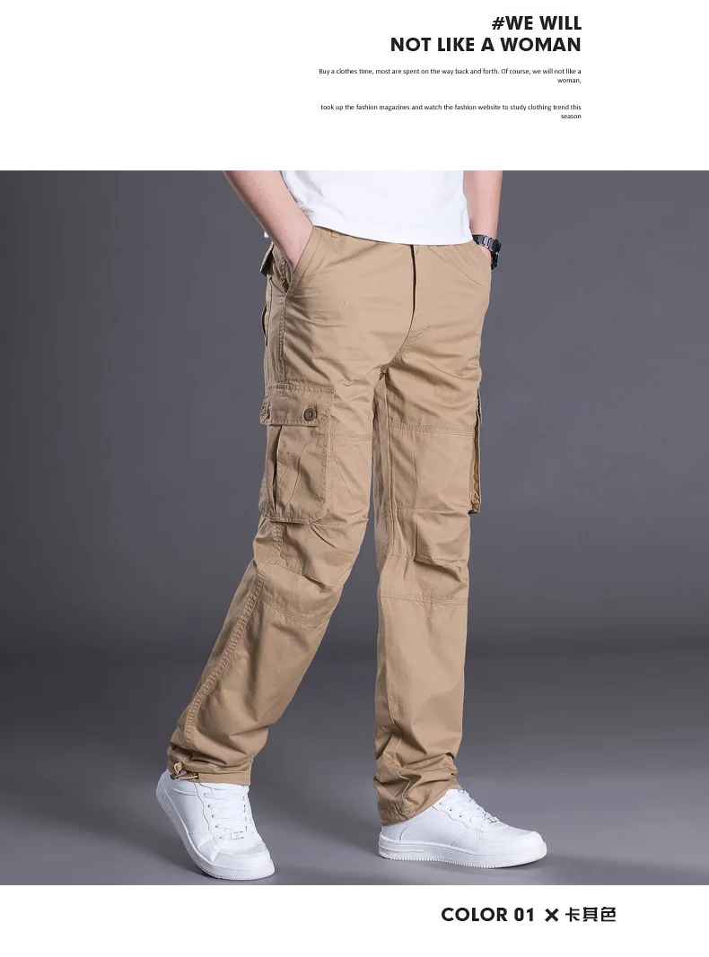 Брюки-карго мужские с множеством карманов, повседневные тактические...