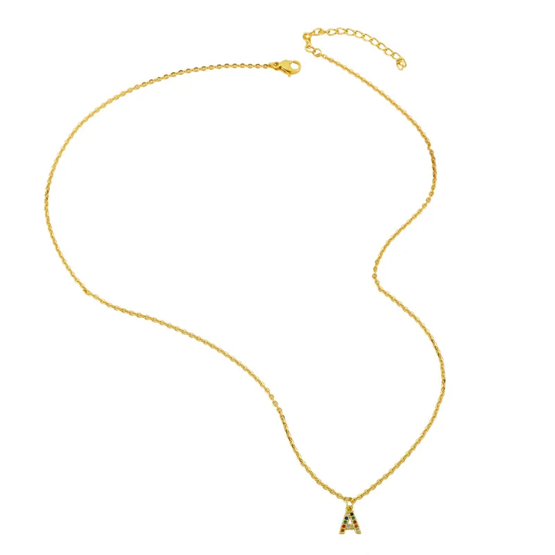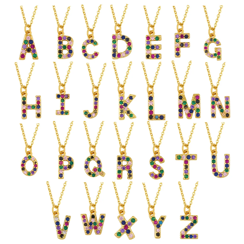 Ожерелье с кулоном, 26 букв, медная микроинкрустация, с гальваническим покрытием из циркония, 24 к