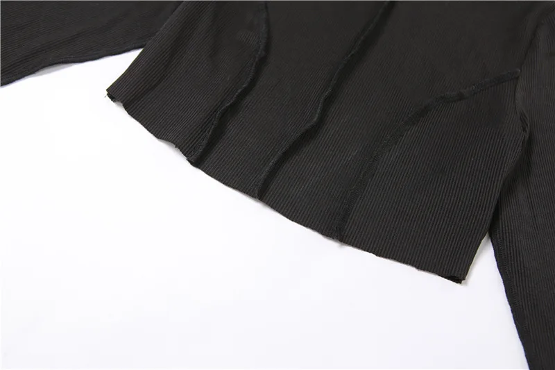 FQLWL осенний Ребристый черный комбинезон, женский комбинезон с выс...