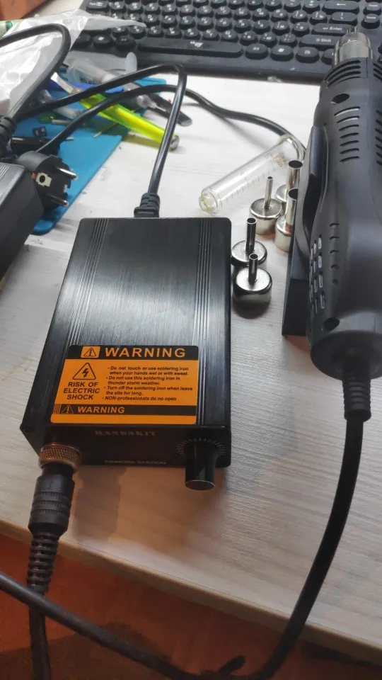 Прежде всего, это хорошая станция 858 типа. Доставка была быстрой, товар хорошо упакован. Я выбираю эту станцию, потому что индикация дисплея быстрая, и контроллер помещается в небольшой и надежный корпус. Он имеет Вход IEC с 2-pol главным переключателем и 1-Pol предохранителем. Я знаю, что есть несколько хорошо известных слабых мест, как обычно, и по причинам безопасности это должно быть Замечено: штепсельная Вилка для пневматического пистолета имеет прямое напряжение, и весь корпус не заземлен должным образом.