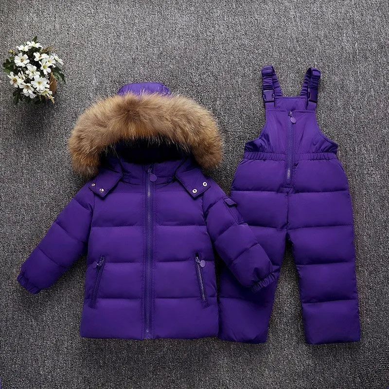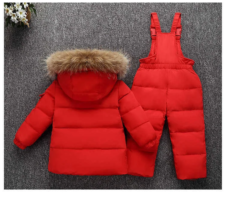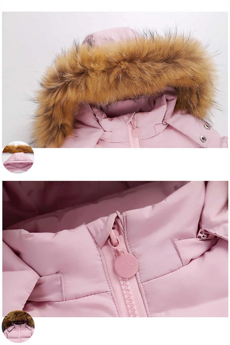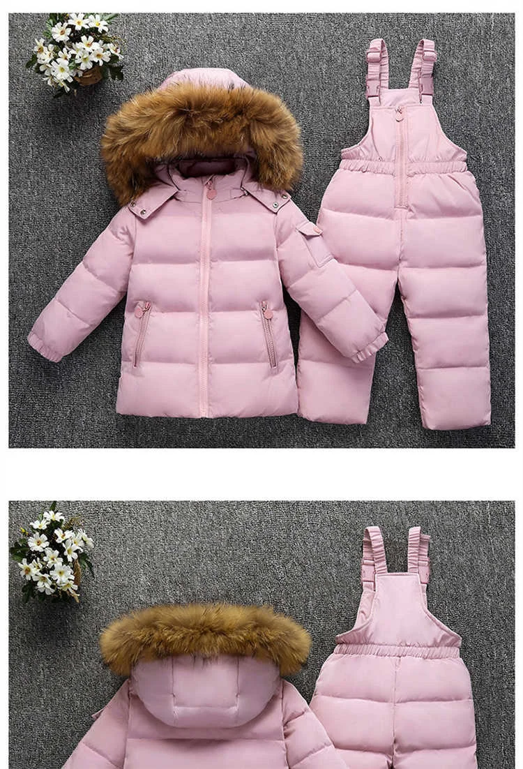 Новый Зимний комплект одежды для детей, зимняя одежда куртка на утином пуху одежда для маленьких мальчиков и девочек детская парка пальто с капюшоном из искусственного меха для России