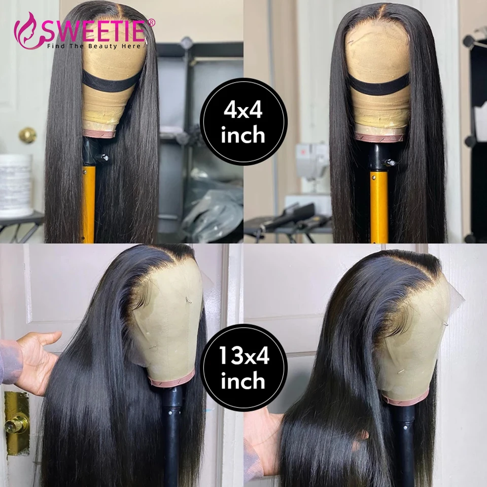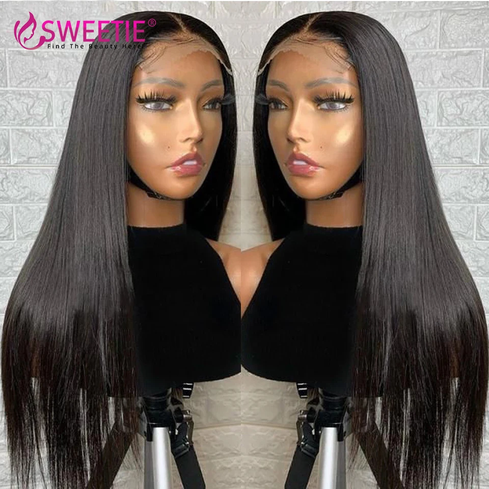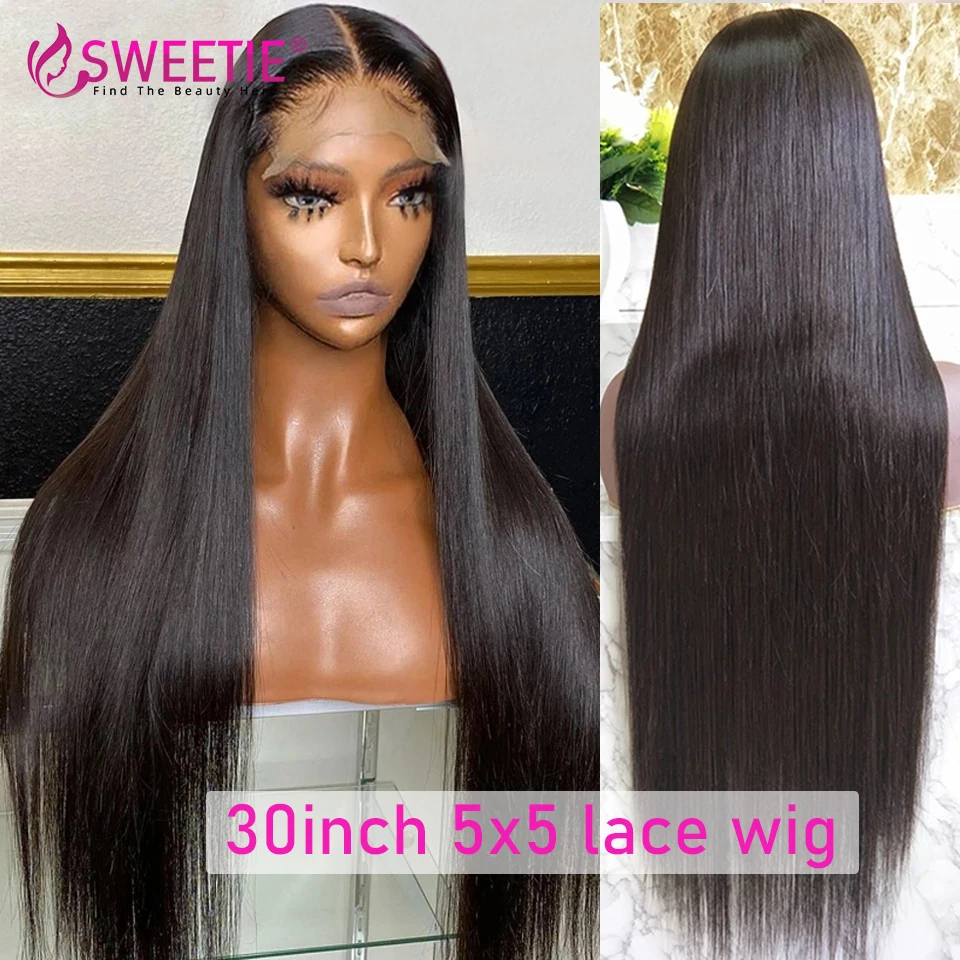 Sweetie 5X5 кружевной передний парик 30 дюймов индийские прямые волосы 13x4 прозрачные кружевные передние человеческие волосы парики предварительно выщипанные плотность 150%