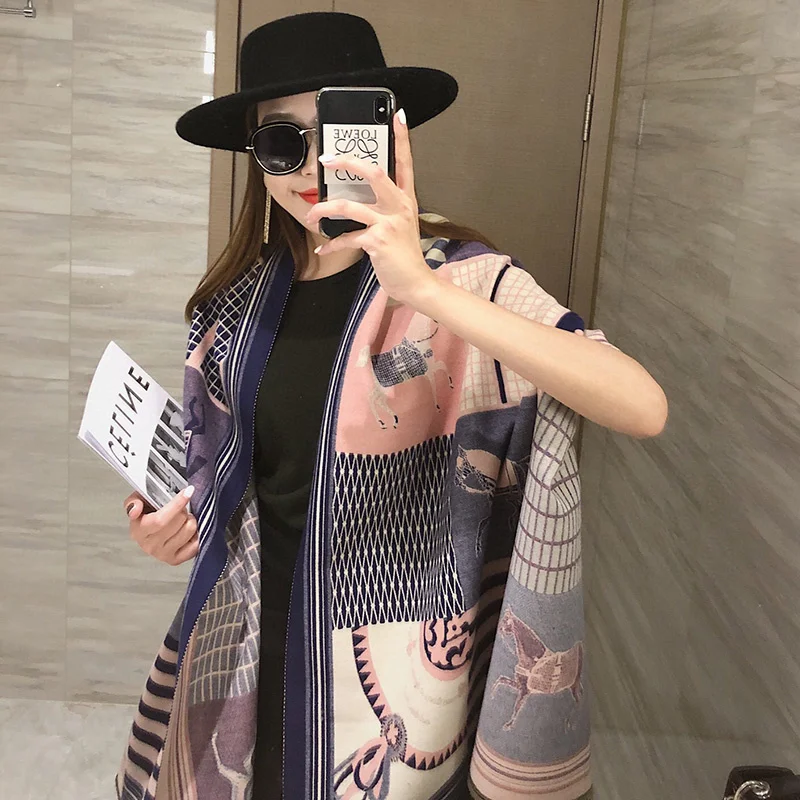 Толстые теплые накидки из искусственного кашемира, женские зимние накидки с принтом, шали и накидки для дам, модные пашмины платки для женщин