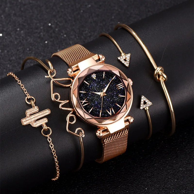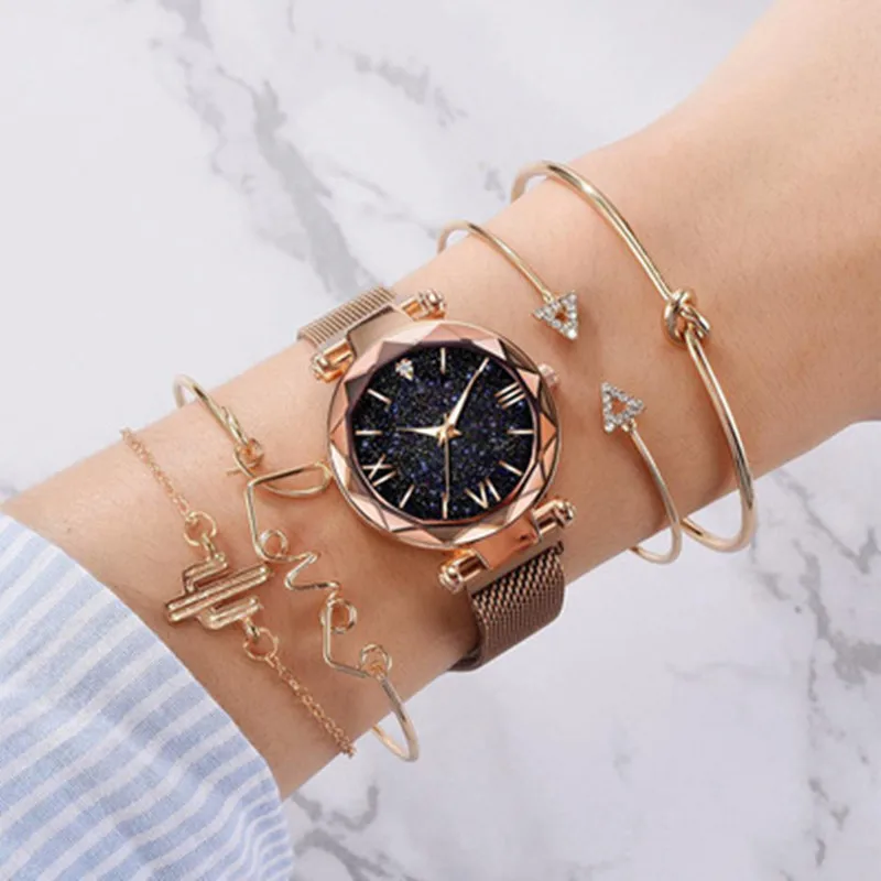 Часы женские кварцевые, с магнитным звёздным небом, 5 шт. в наборе