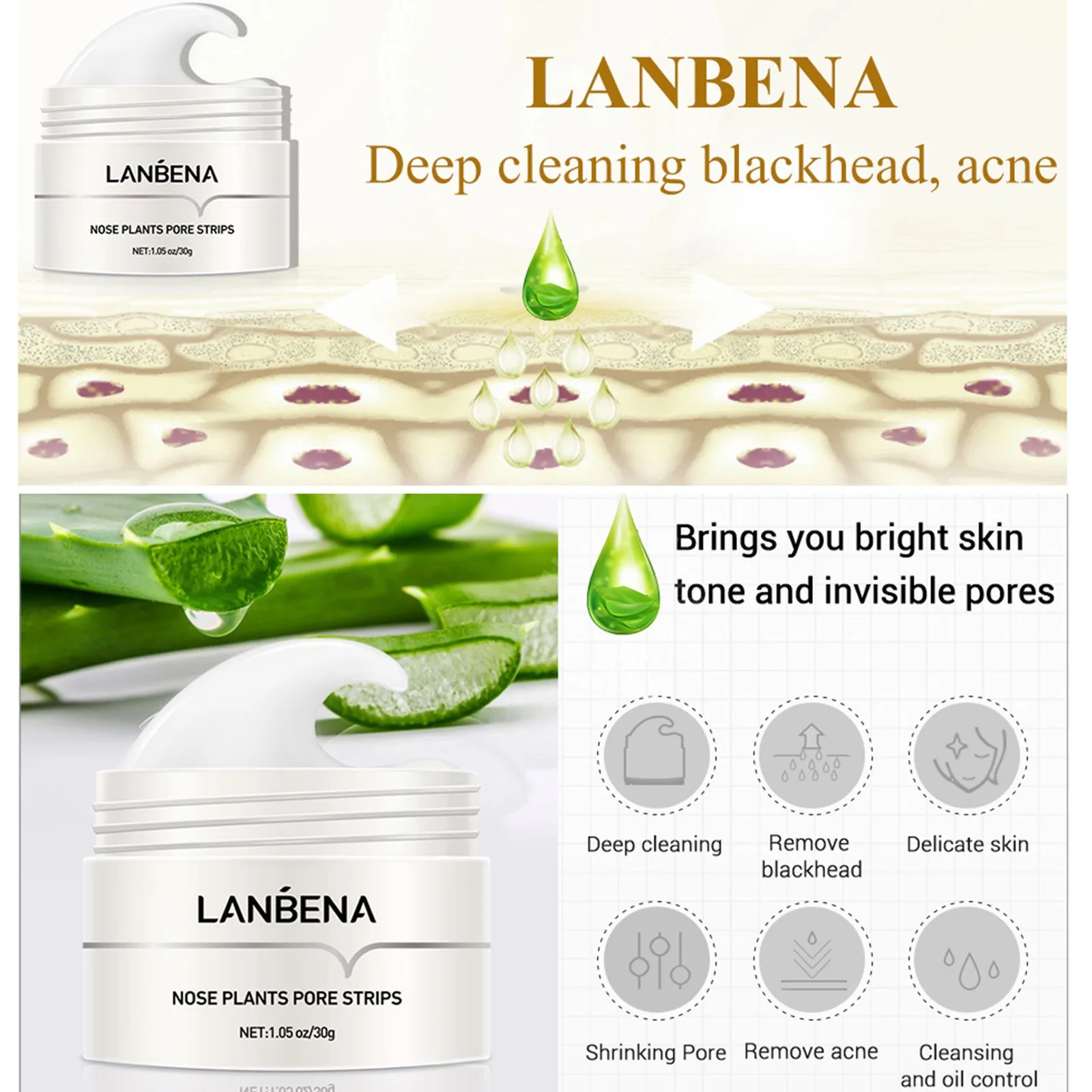 Средство для удаления черных точек LANBENA, крем, бумажная растител...