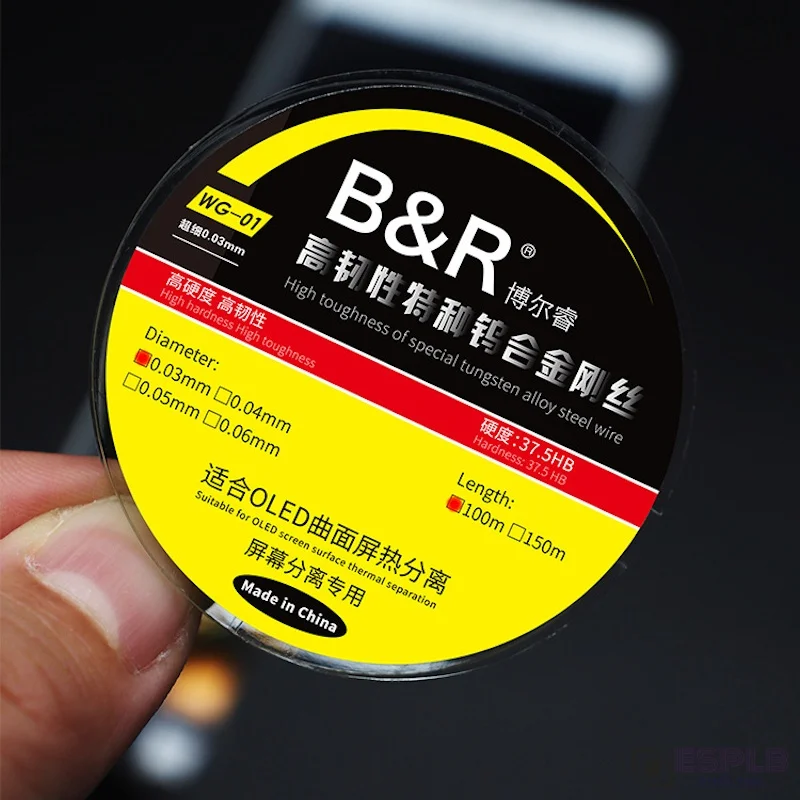 Вольфрамовая стальная проволока высокой прочности 150 м 0,030,040,050,06 мм для сломанного изогнутого OLED-экрана Термическое разделение поверхности