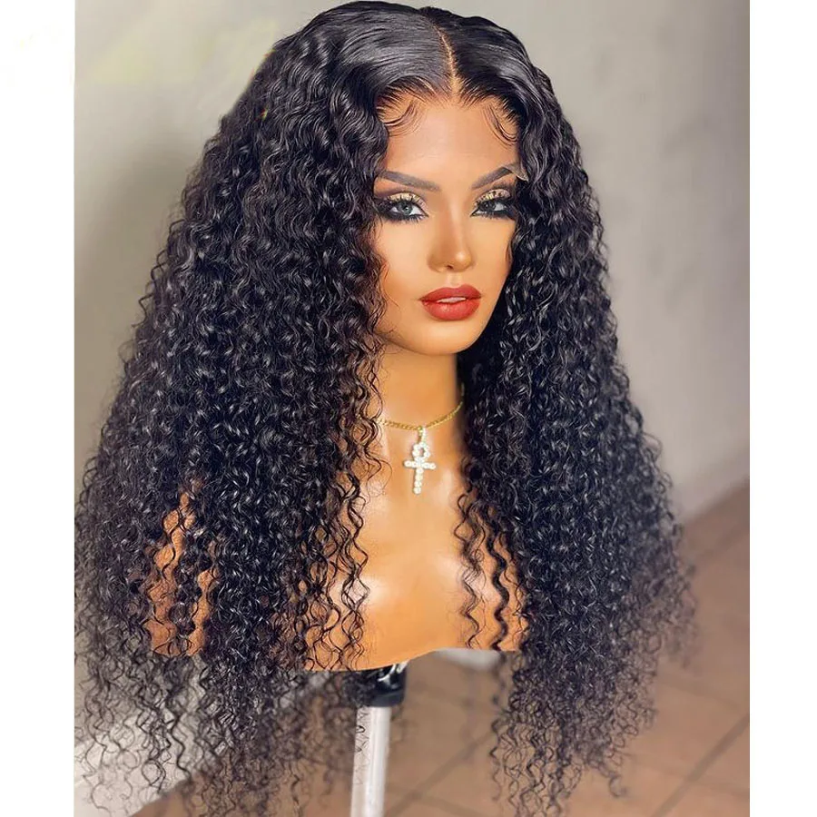 26 дюймов длинный кудрявый 180% плотный синтетический кружевной пер...