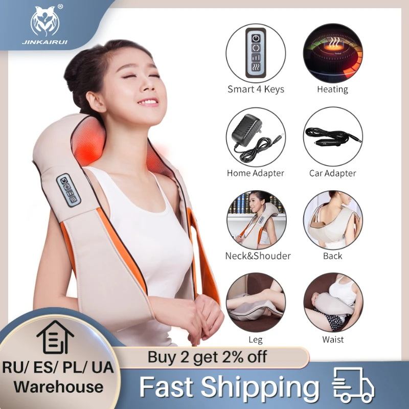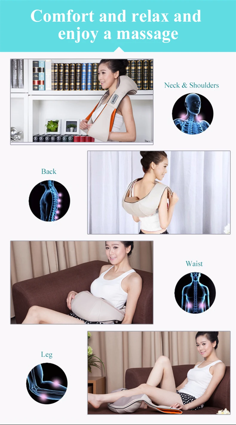 U-образная электрическая массажная шаль для шеи, плеч, спины, разминания шиацу, инфракрасное Отопление, для автомобиля, дома, двойного назначения, лучший подарок для родителей