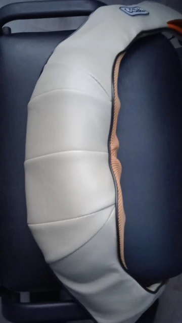 Массажер отличный! Пришел раньше срока. На вид качественный и крепкий. Если вы не можете ходить к массажисту, эта штука должна быть дома однозначно. В течении тестовых дней выяснилось, что при нажатии кнопки "вкл" сеанс длится 15 мин., смена вращения роликов происходит каждую минуту, подогрев включается и отключается автоматически, тепло чувствуется. Воротник со своей работой справляется 100%. Продавцу процветания!