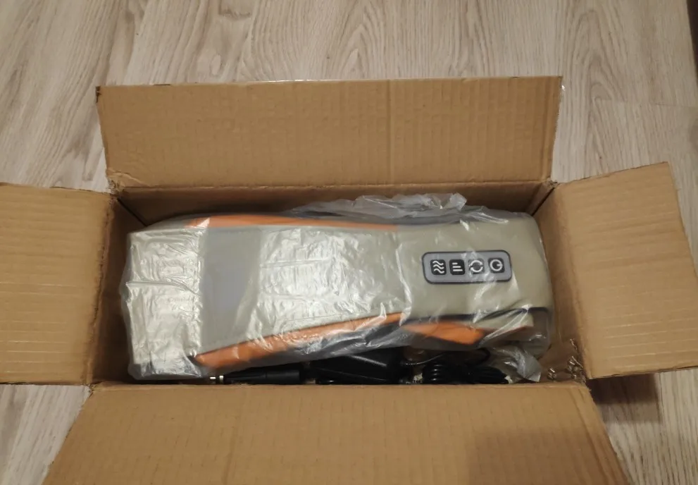 Заказ пришел очень быстро. Упакован в коробку. Нормальный массажер, работает, греет. Для шеи очень неплохо.