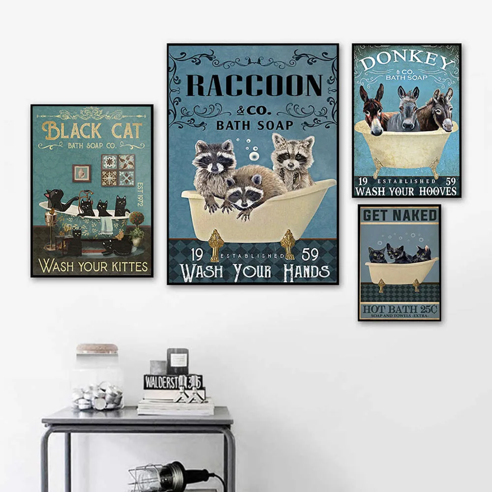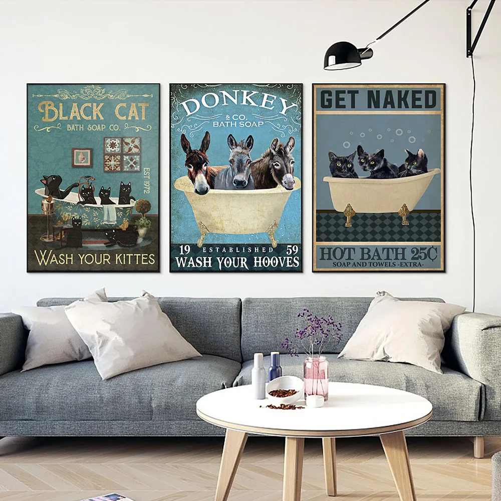 Постер с изображением черного кота, осла, енота, обнаженного, с принтом с цитатой