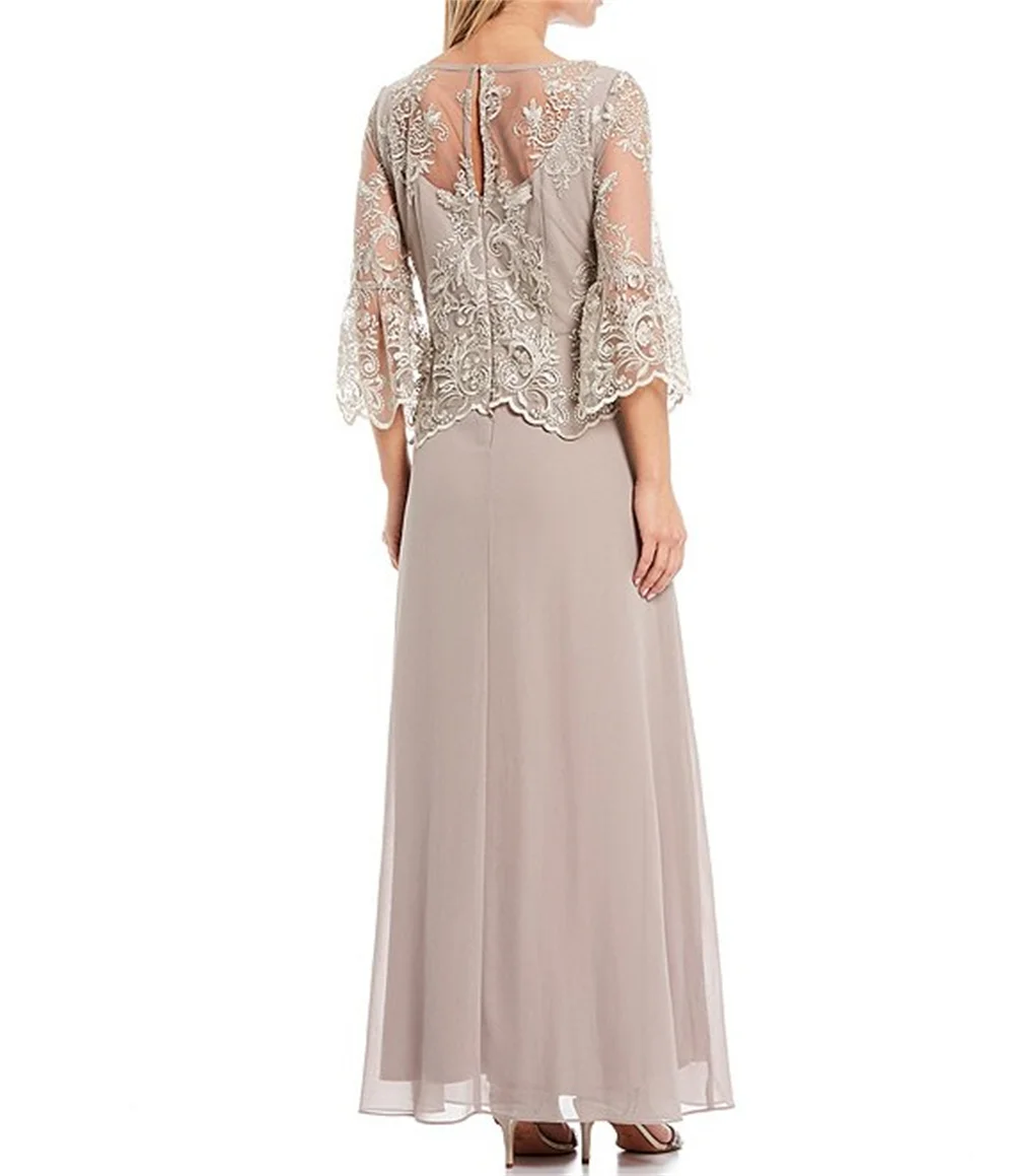 Кружевное платье для мамы и невесты с рукавами-колокольчиками размера плюс, с пиджаком, скромные шифоновые вечерние платья для мамы, Vestidos De Madrina