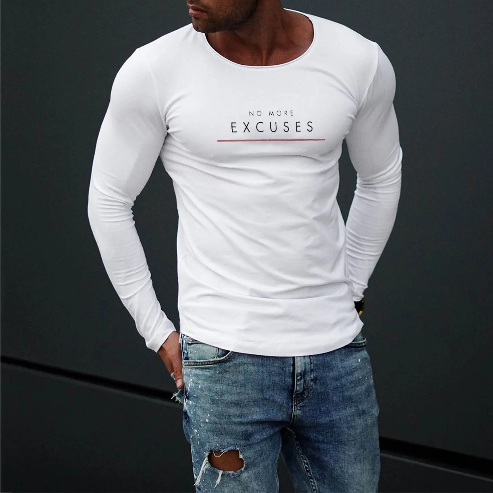 Футболка мужская с длинным рукавом и круглым вырезом, модная повседневная приталенная рубашка с буквенным принтом, пуловер, уличная одежда, лето-осень
