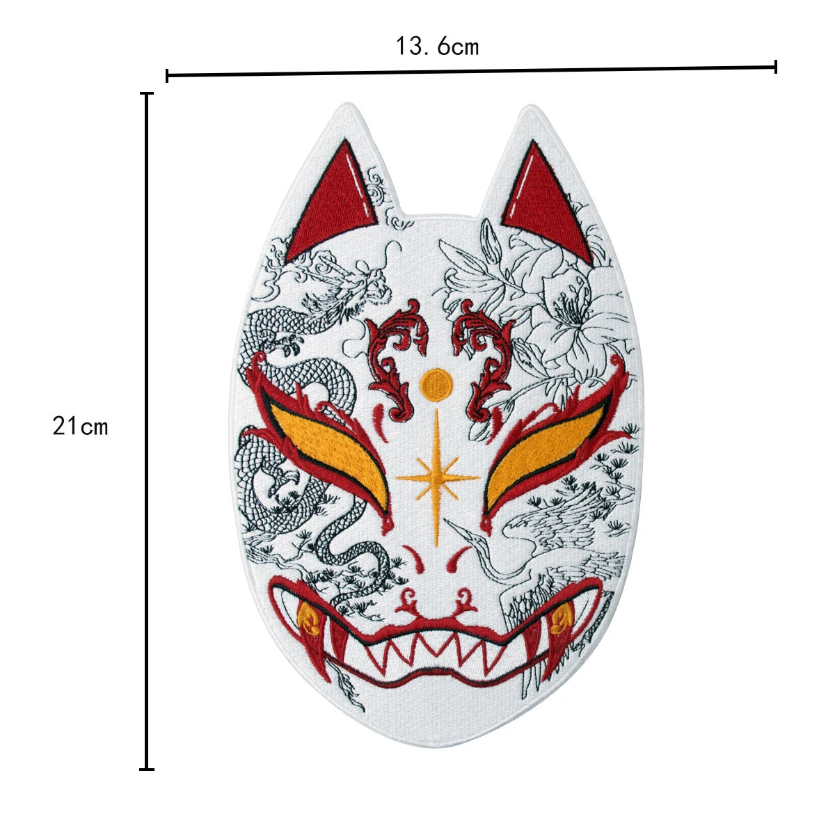 Kitsune маска мультфильм Вышивка Патчи утюгом для одежды DIY японское ремесло большой спины аппликации оптовая продажа одежды значки