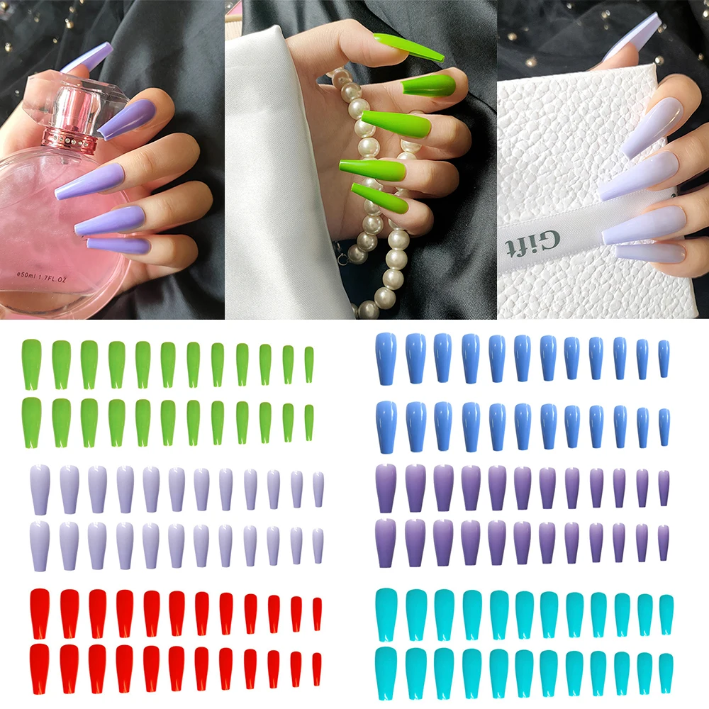 20 шт. глянцевые накладные ногти телесного цвета, ношение, длинные балерины, накладные ногти с дизайном клея