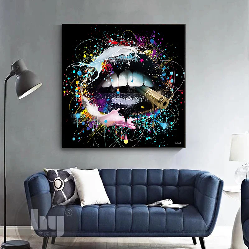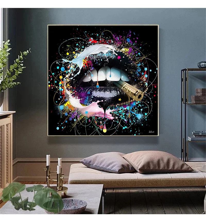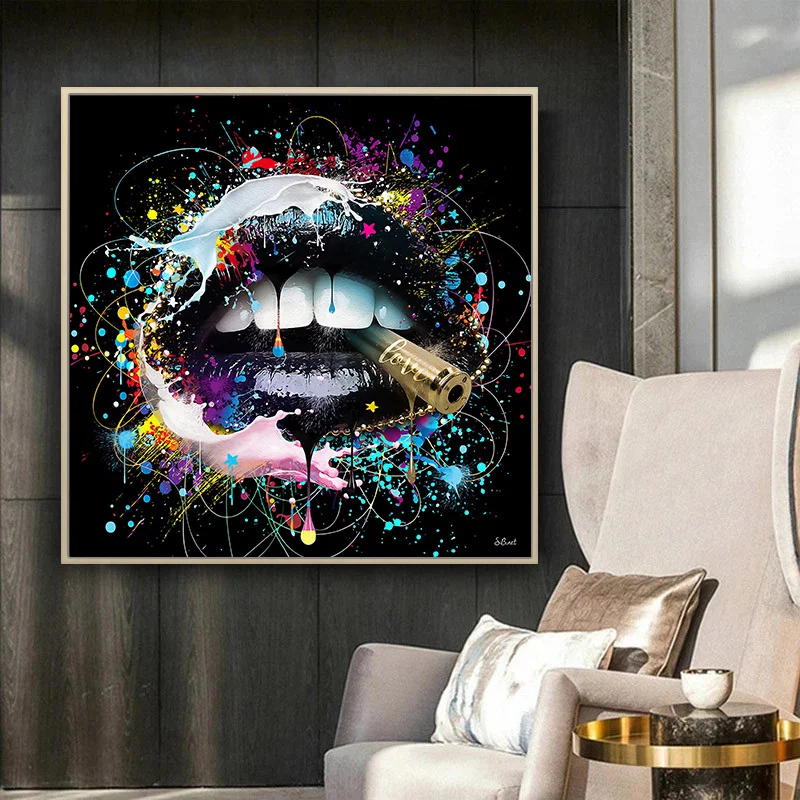 Индивидуальные губы граффити художественные плакаты и принты уникальный рот холст картина черный прохладный ветер Настенная картина бар комната Домашний декор