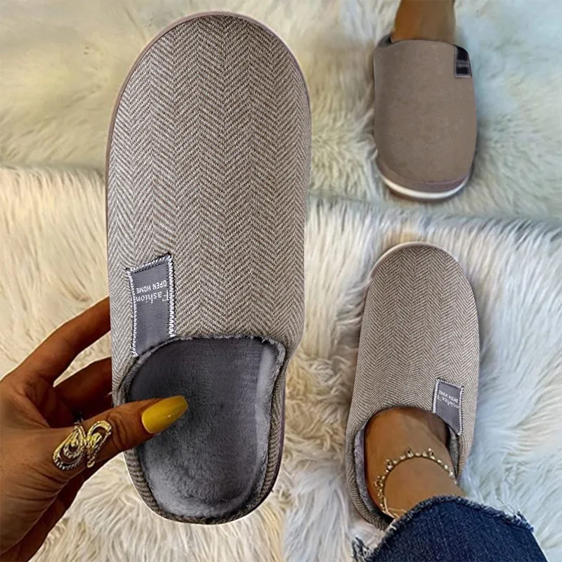 Женские тапочки, теплые полосатые домашние противоскользящие зимние...