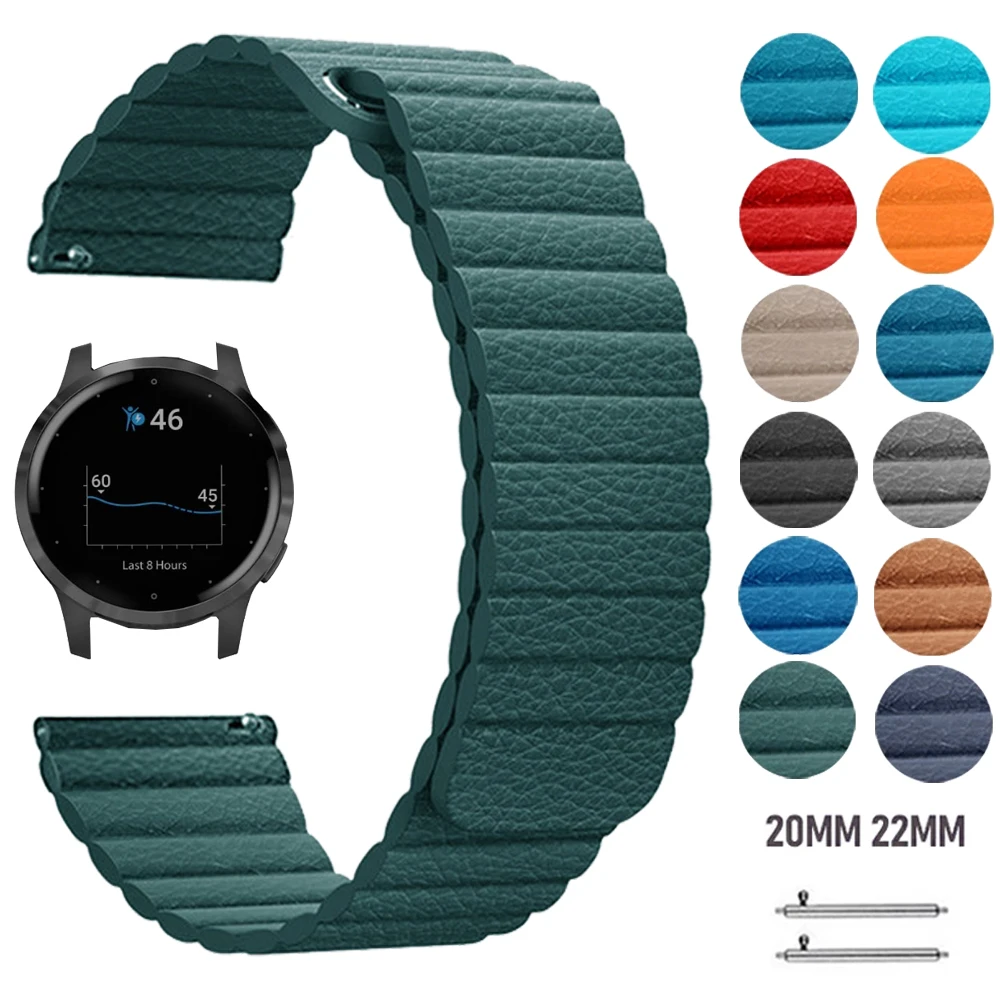 Ремешок кожаный для наручных часов Garmin Vivoactive 4 3, браслет с магнитной застежкой для Vivomove HR Garmin MoveActive Watch, 20 мм 22 мм