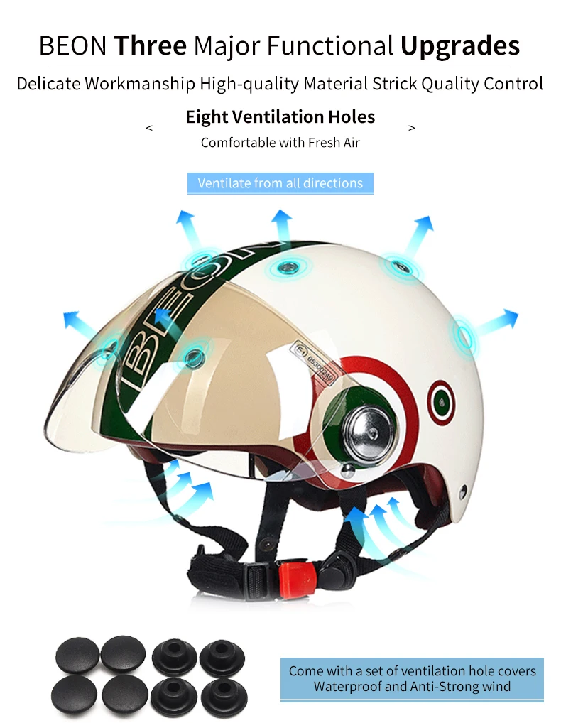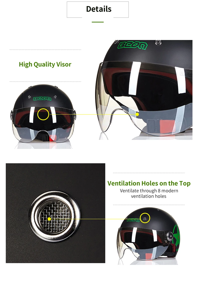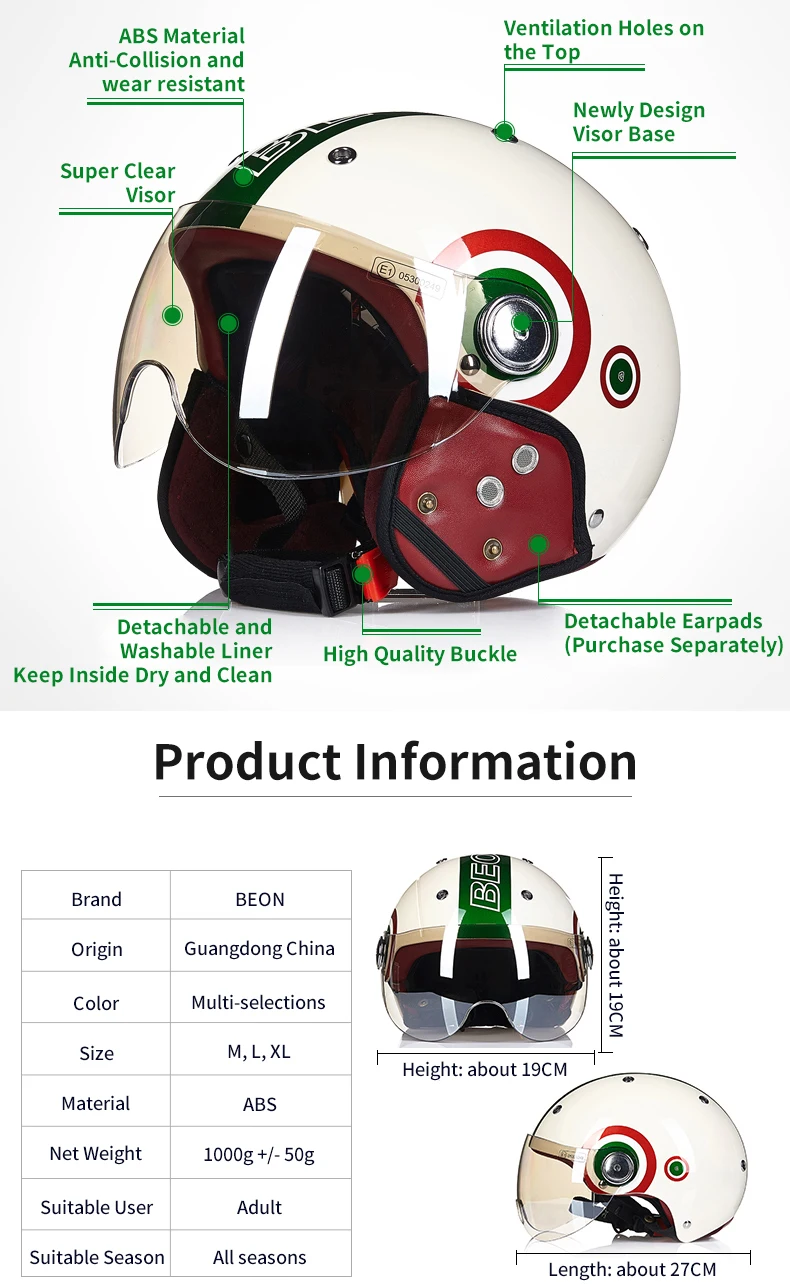 Мотоциклетный шлем BEON, шлем для мужчин и женщин в винтажном стиле...