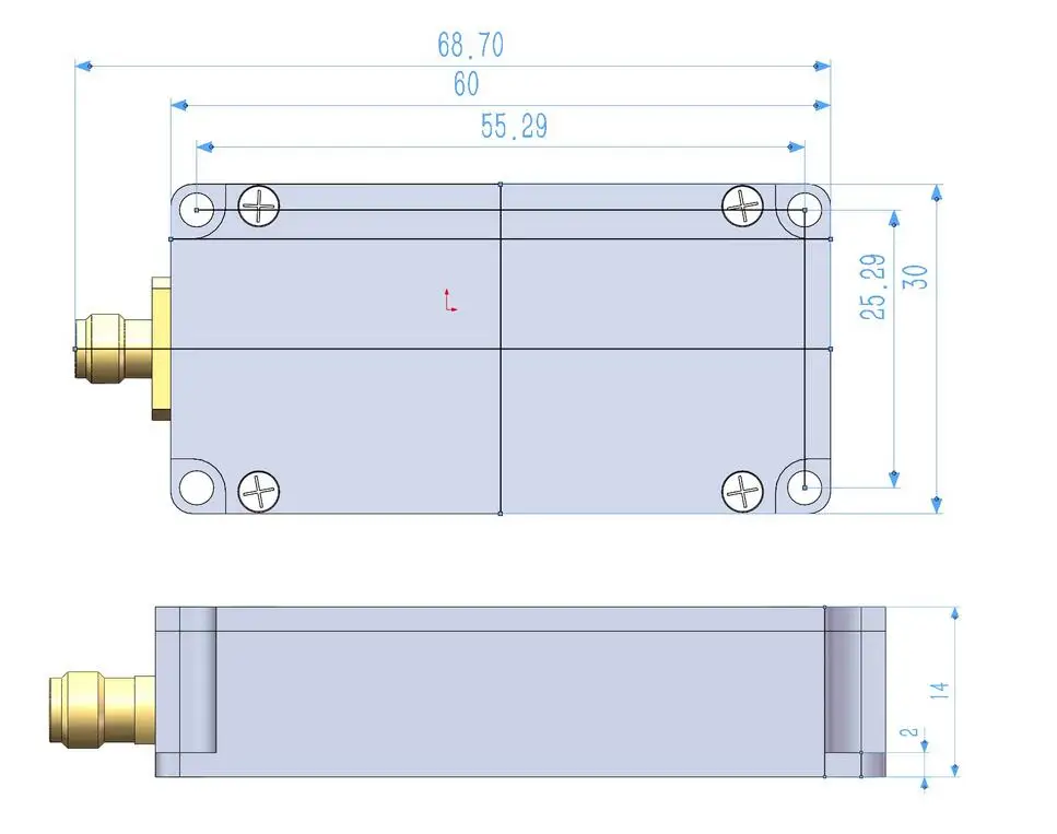3. Громкость: 6*3*1,4 см (без торчащих SMA, обратитесь к механическому воздействию, рисунок с учетом для получения более подробной информации)