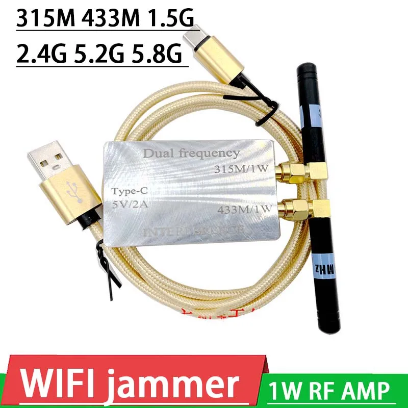 315M 433M 1,5G 2,4G 5,2G 5,8G развертки частоты Jammer 1W усилитель мощности + антенна TYPE-C