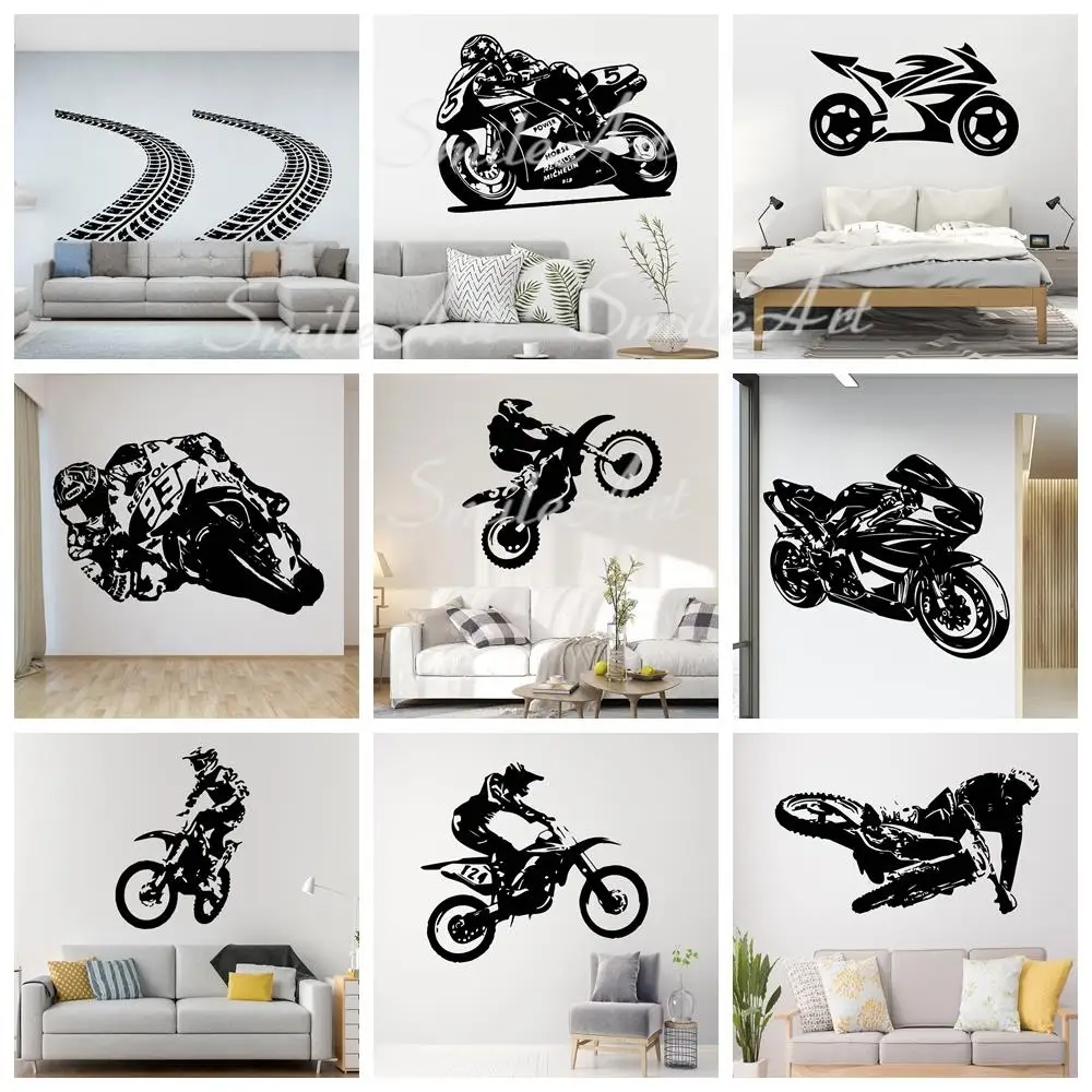 Бесплатная доставка, мотоциклы, виниловые наклейки, настенные Стикеры для детской комнаты, виниловые настенные наклейки