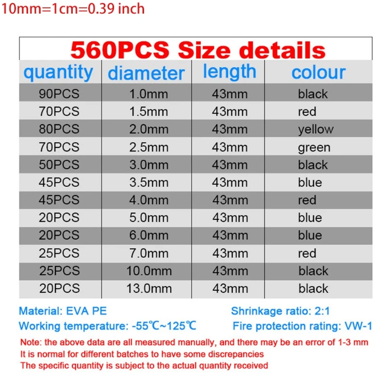 Комплект термоусадочных трубок, 560 шт., термоусадочные трубки для обмотки проводов, ассортимент втулок для электрических кабелей, стойкая изоляция, Прямая поставка