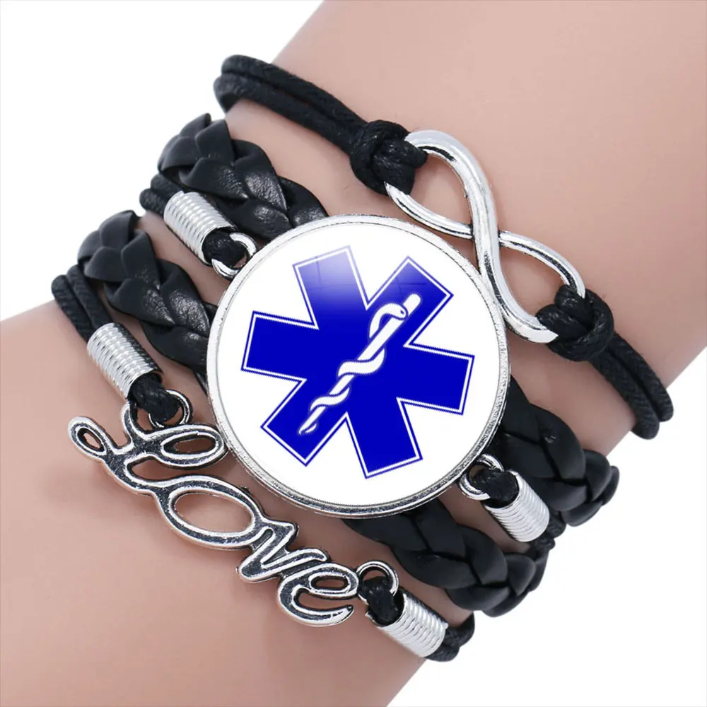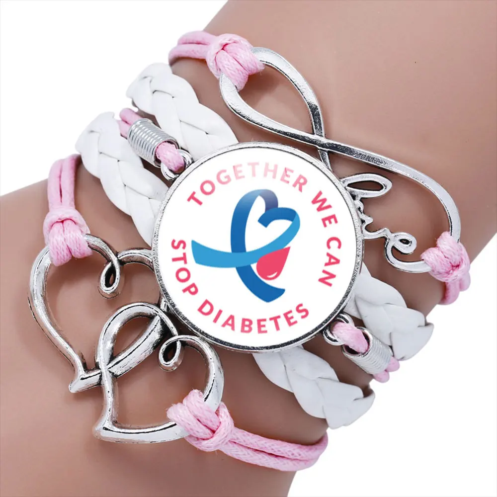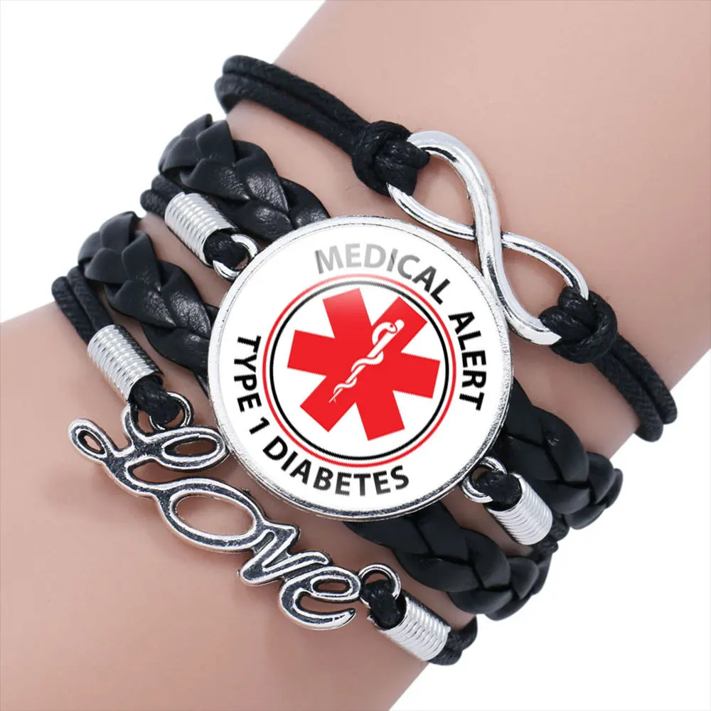 FIMAODZ диабетический медицинский браслет для мужчин унисекс диабетический Символ Предупреждение стекло черные кожаные браслеты ручной работы регулируемые браслеты