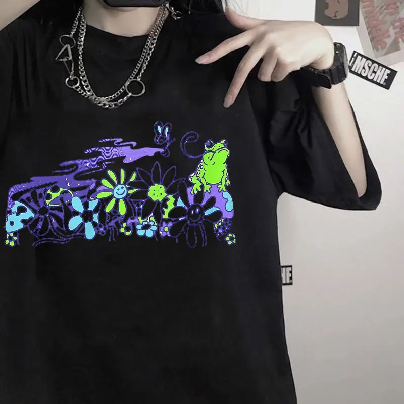 Женская футболка в стиле ретро, модная футболка с принтом грибы, лягушки, эстетическая уличная одежда, с графическим принтом, милый топ