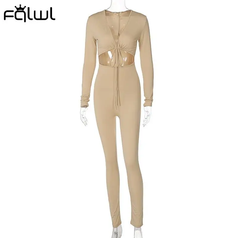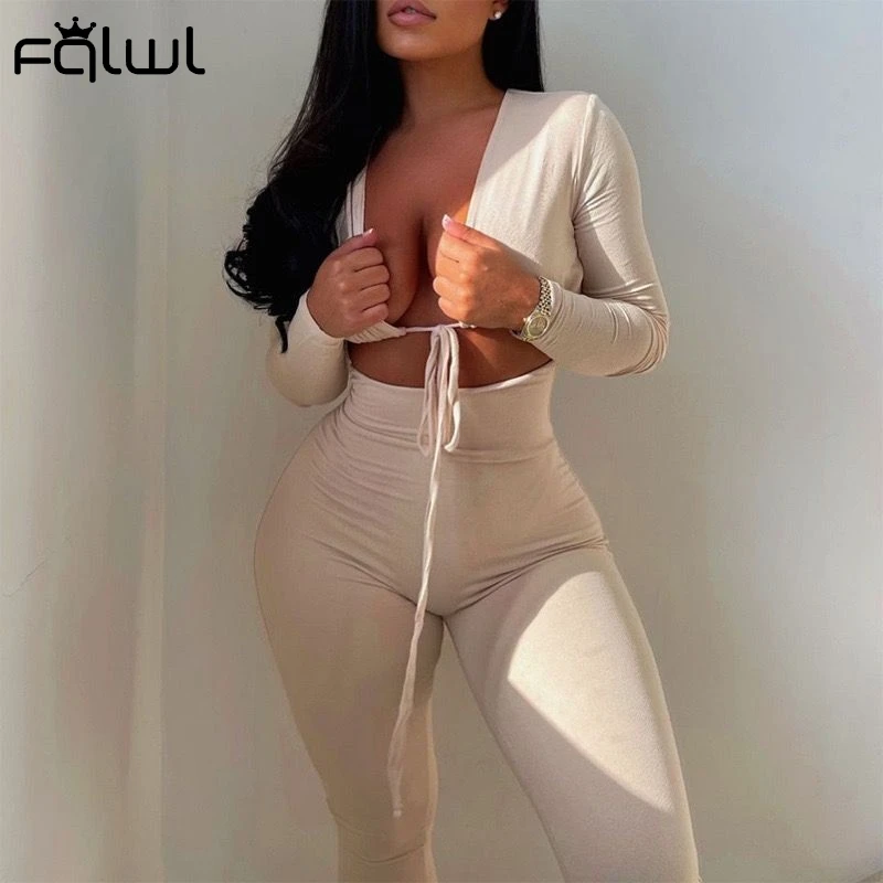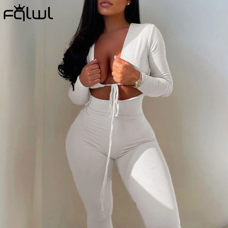 FQLWL летний зимний сексуальный черный женский комбинезон 2021 Белый Черный бандажный Облегающий комбинезон с длинным рукавом цельный женский костюм
