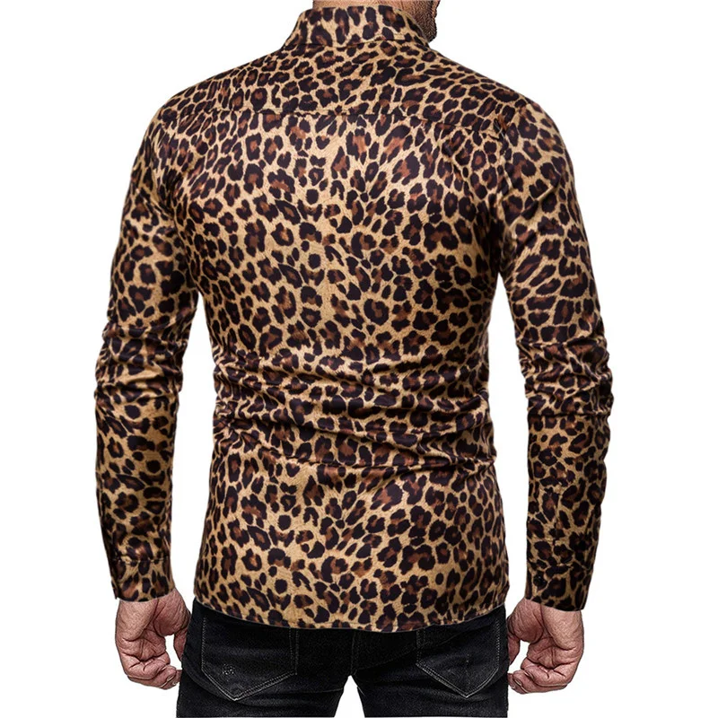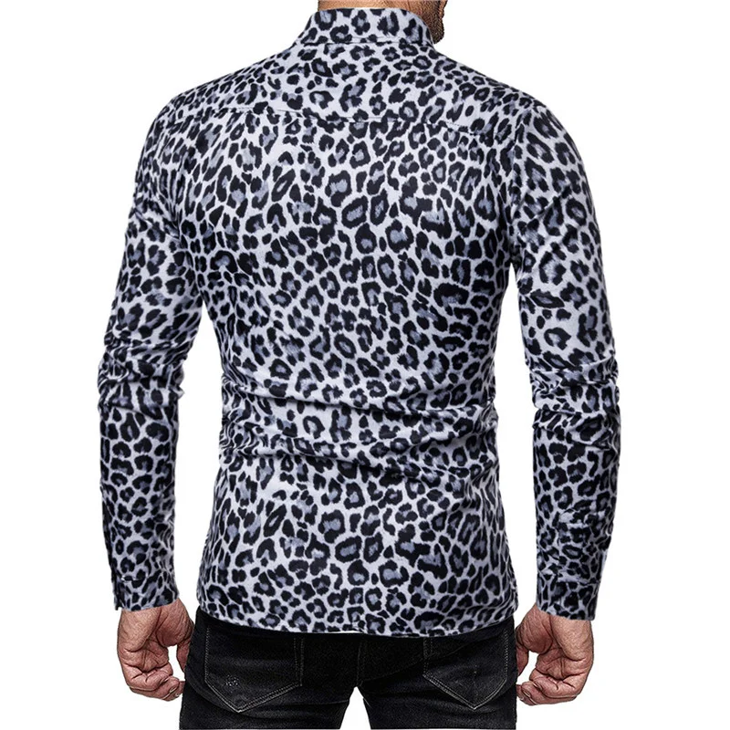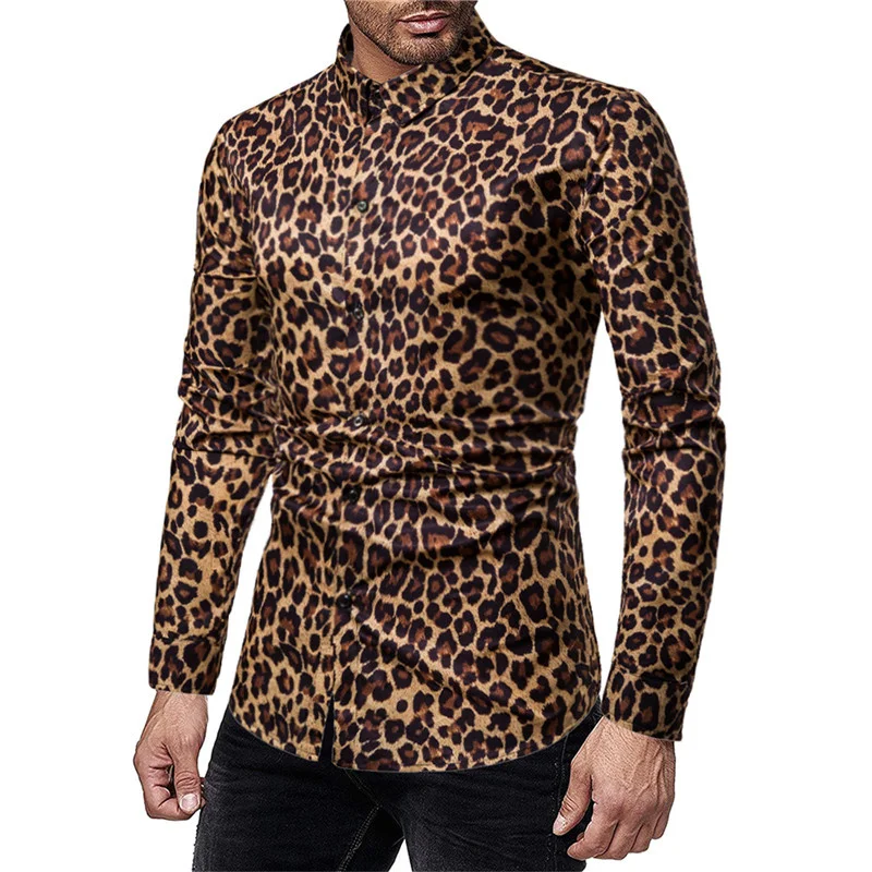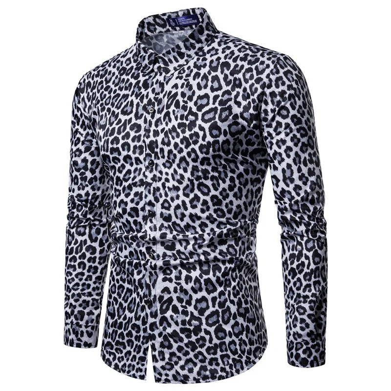 Сексуальная рубашка с леопардовым принтом, мужская рубашка с леопардовым принтом, для клувечерние вечерние выпускного вечера, мужская рубашка, длинная гавайская рубашка.