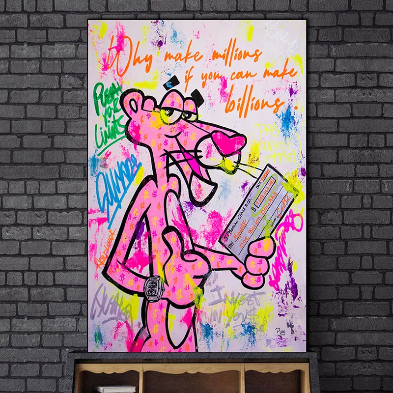 Картина на холсте Розовая пантера с изображением диснеевских граффити