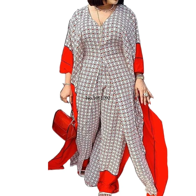 Платье для мамы в африканском стиле; Модная шифоновая ткань с цифровым принтом; Широкие брюки; Комплект из двух предметов