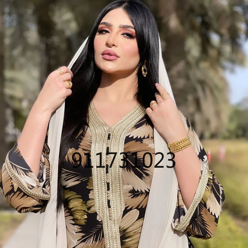 Мусульманское вечернее платье «Рамадан», «ид Мубарак», платье свободного покроя с принтом, Марокканское, индийское, восточное, повседневное, этническое, Молитвенное платье