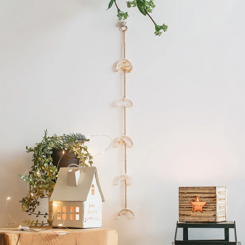 Эпоксидная смола фазы луны подвесной кулон орнамент с металлической цепочкой шикарный богемный полумесяц блестки украшение стены для спальни