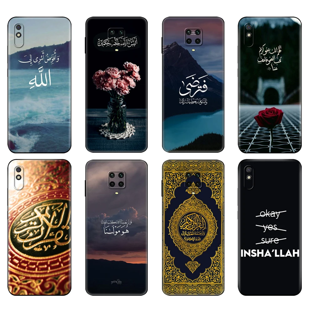 Черный чехол из ТПУ для Xiaomi Redmi 7A, 8, 8A, 9, 9A, 9C, чехол для Redmi Note 8T, 8 Pro, T, Note 9, 9S, 9 Pro, чехол с цитатой о арабском исламском Коране