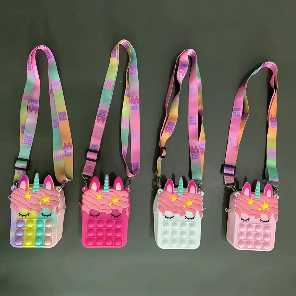 Новая сумка-мессенджер с единорогом и простым затемнением, игрушки-антистресс с пузырьками, детская игрушка-Поппер, брелок, кошелек, бесплатная доставка